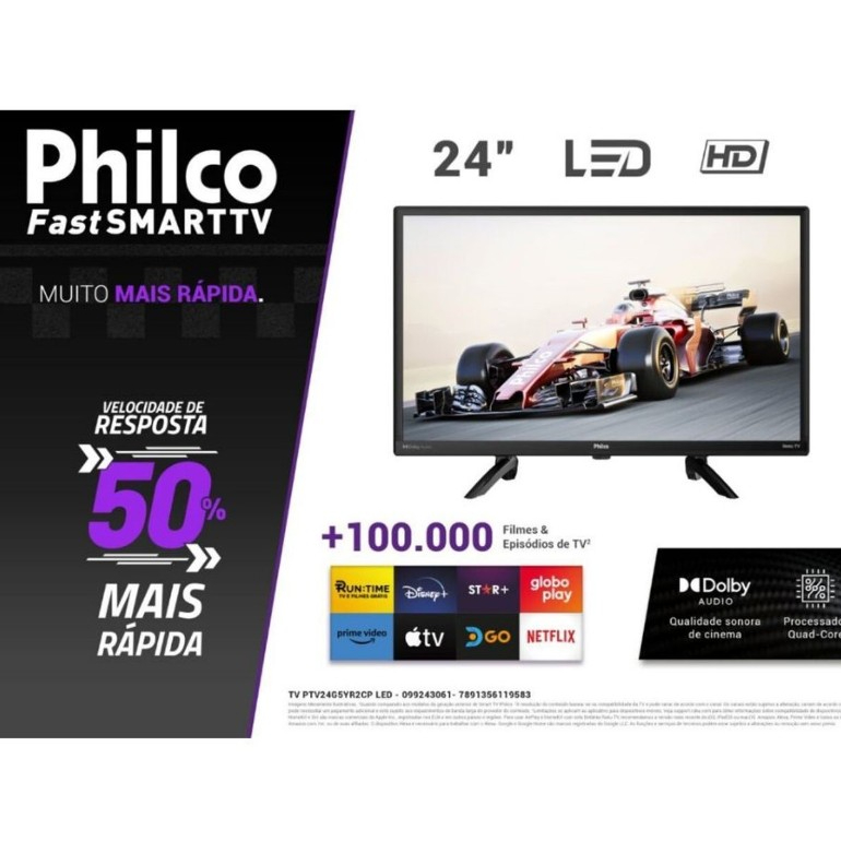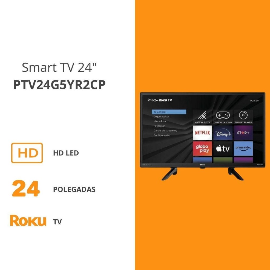 Smart TV 24" Philco HD Led Roku TV Dolby Áudio - PTV24G5YR2CP