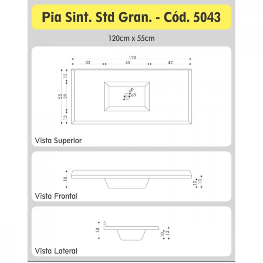 Tampo de Pia Com Cuba Central Marmoplan Rorato 1,20m