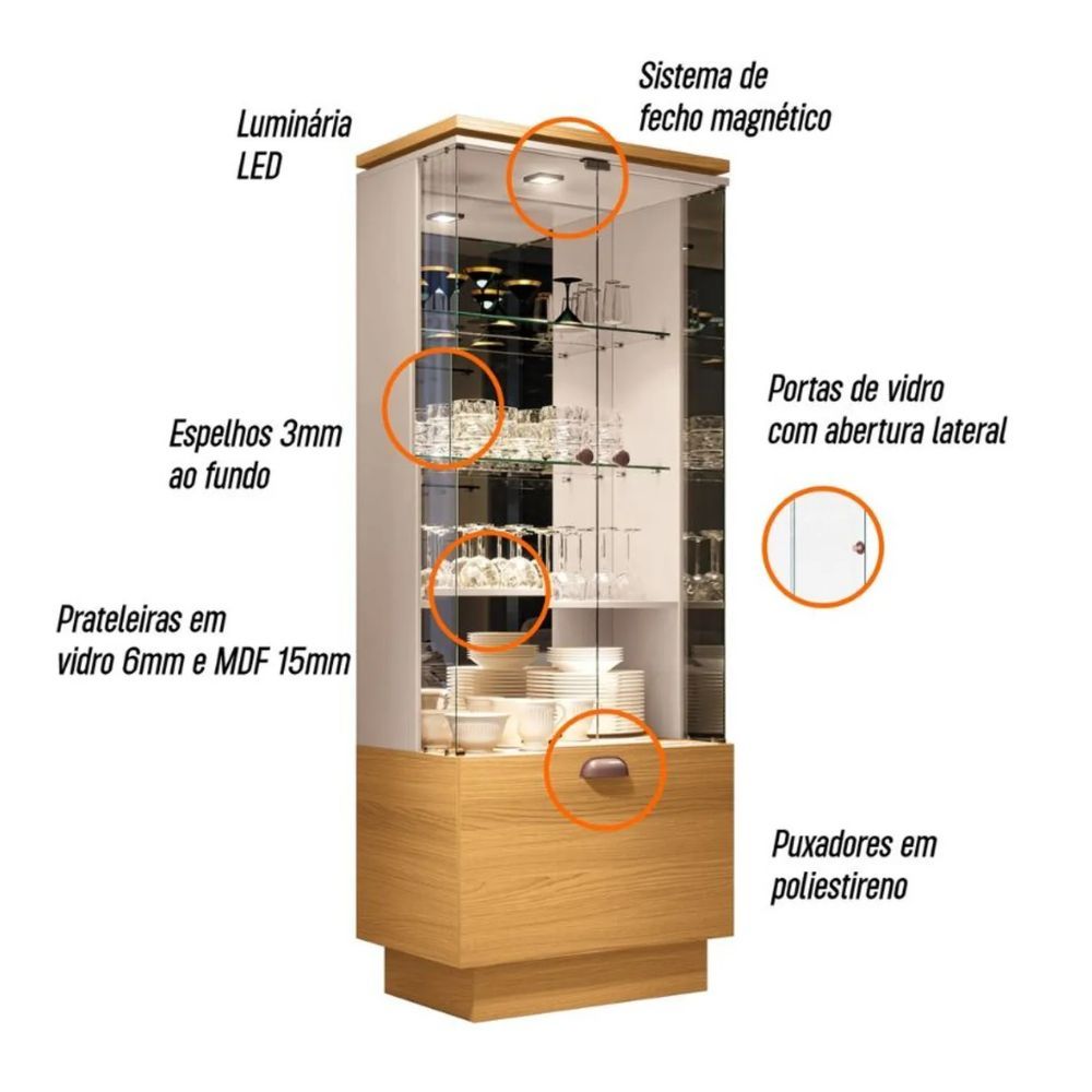 Cristaleira 2 Portas de Vidro 1 Gaveta Aura HB Móveis