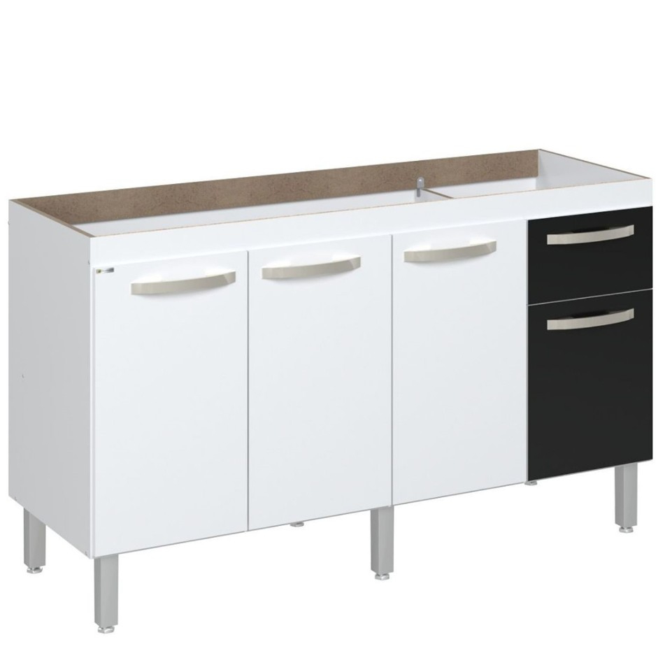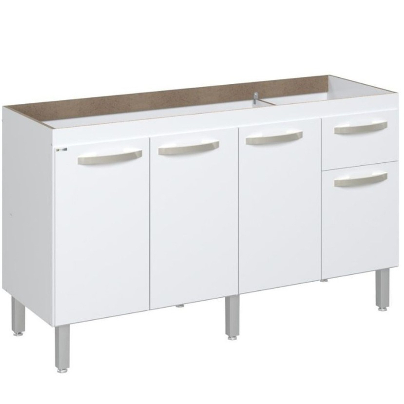 Balcão Flat De Cozinha 143 cm - 4 Portas e 1 Gaveta