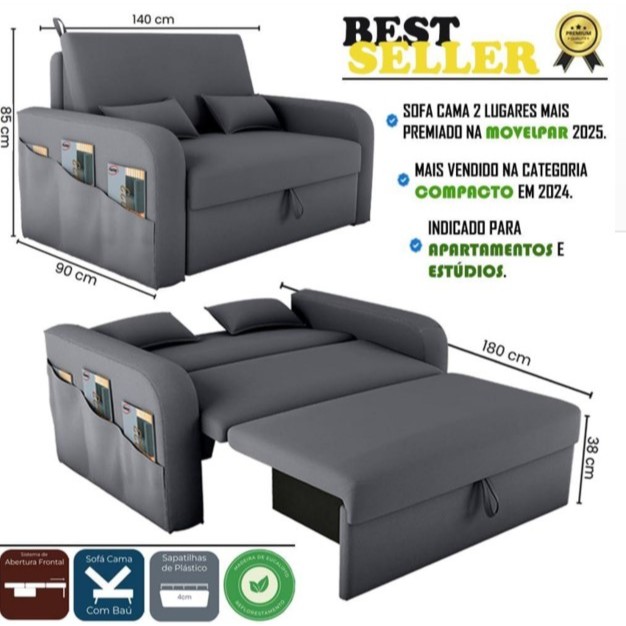 Sofá Cama Matrix Lady Dai com Baú - Reclinável