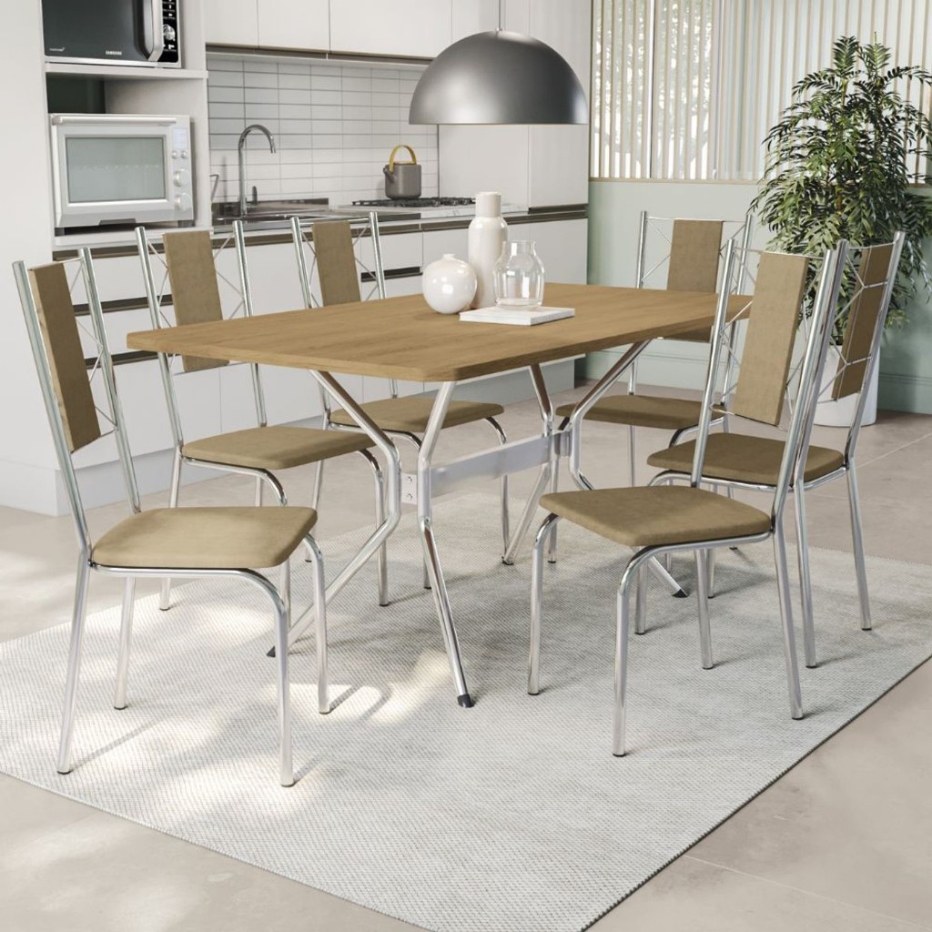 Conjunto de Mesa Kappesberg 1,60m acompanha 6 cadeiras cromadas