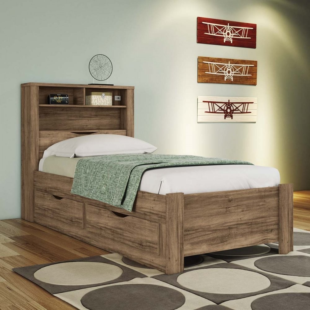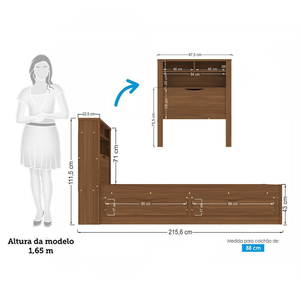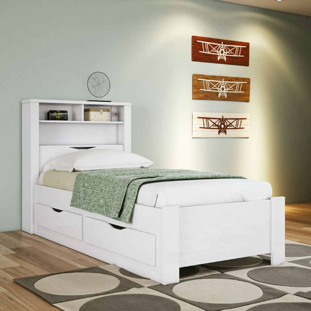 Cama de Solteiro com 2 Gavetas e Baú Invicta Santos Andirá