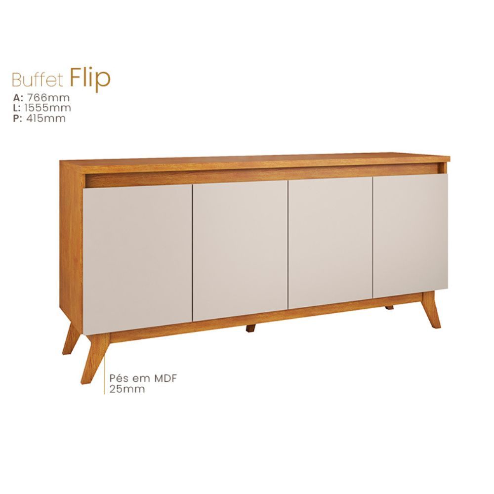 Balcão Buffet Flip 4 Portas 2 Prateleiras - Viero Móveis