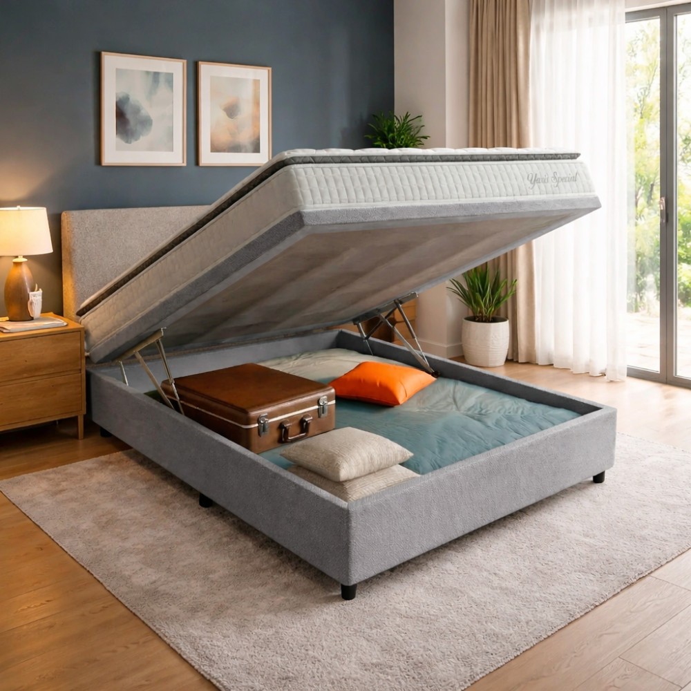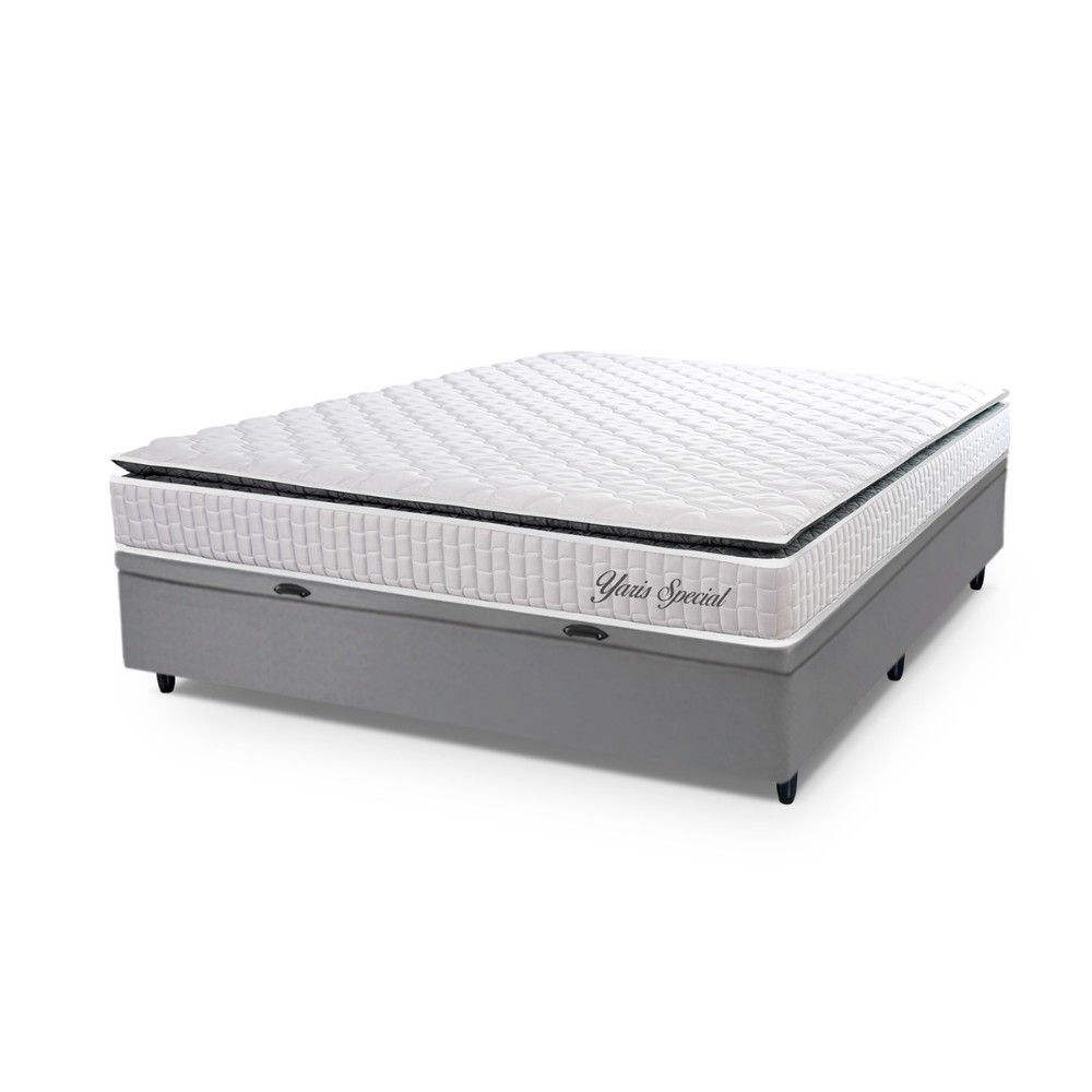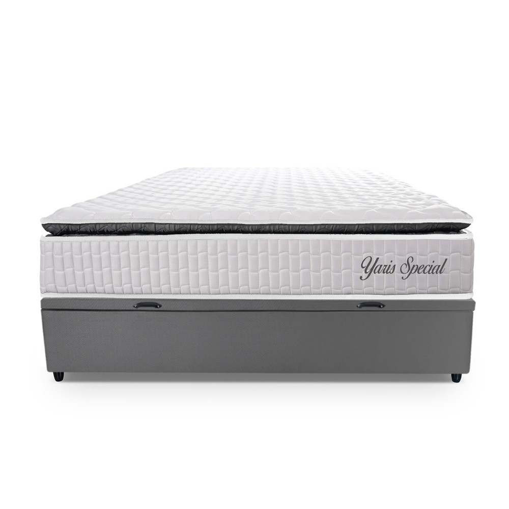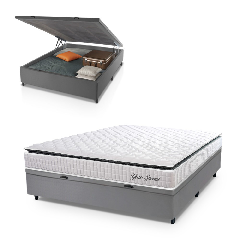 Conjunto Box Baú Casal Hellen Colchão com Molas Ensacadas Yaris Pillow Top 138x188x61cm