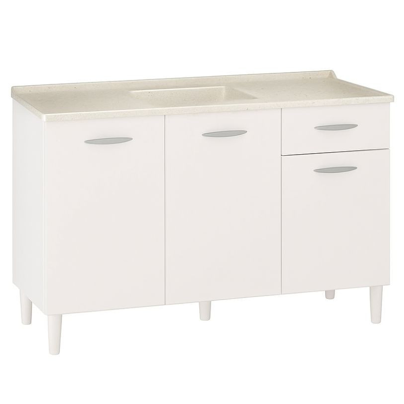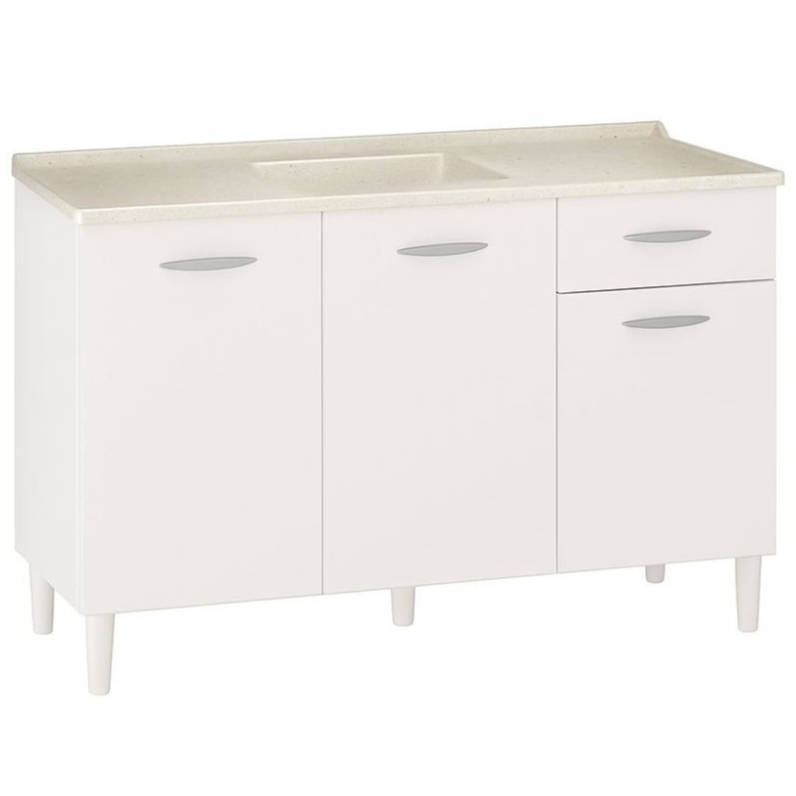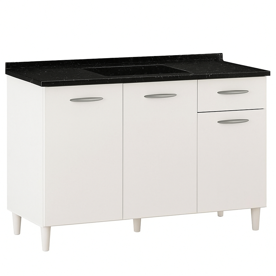 Conjunto Balcão de cozinha 3 portas 1 gaveta e Tampo de pia granitado