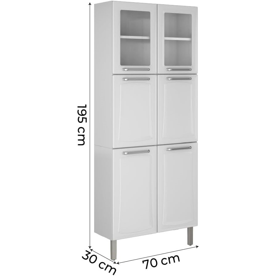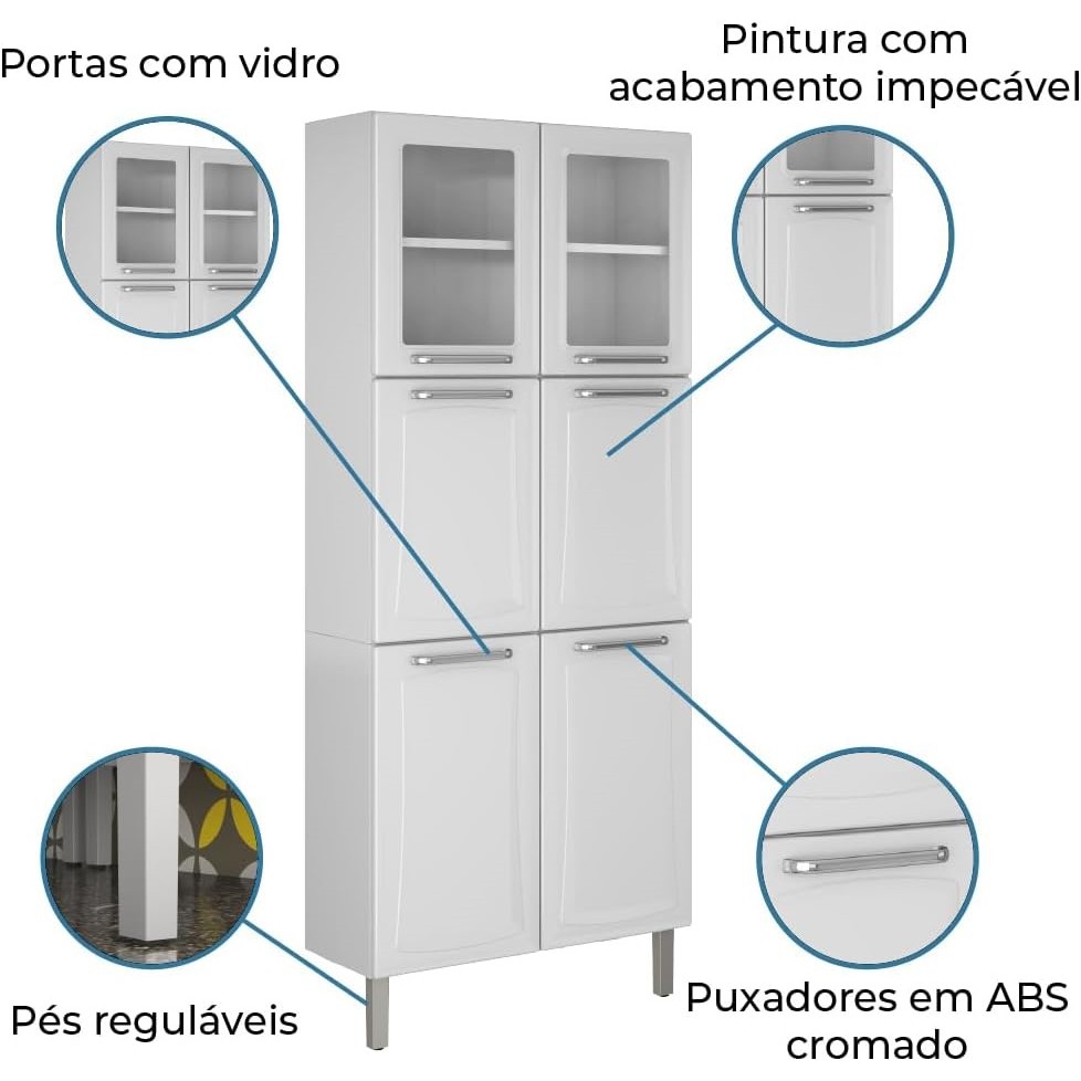 Armário de Cozinha / Paneleiro Duplo de Aço Itatiaia Tarsila com Vidro e 6 portas - Branco