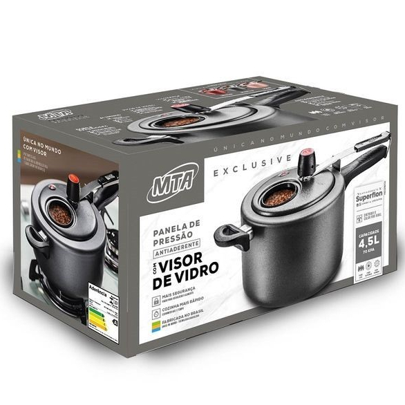 Panela de Pressão Exclusive MTA com Visor – 4,5 Litros | Antiaderente | Grafite |
