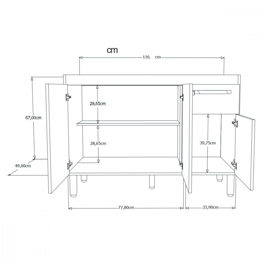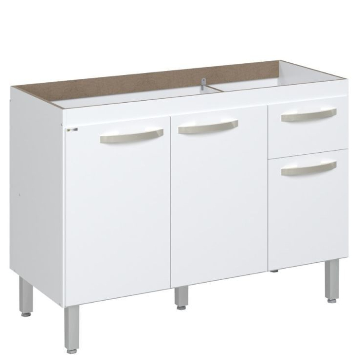 Balcão Flat De Cozinha 116 cm - 3 Portas e 1 Gaveta