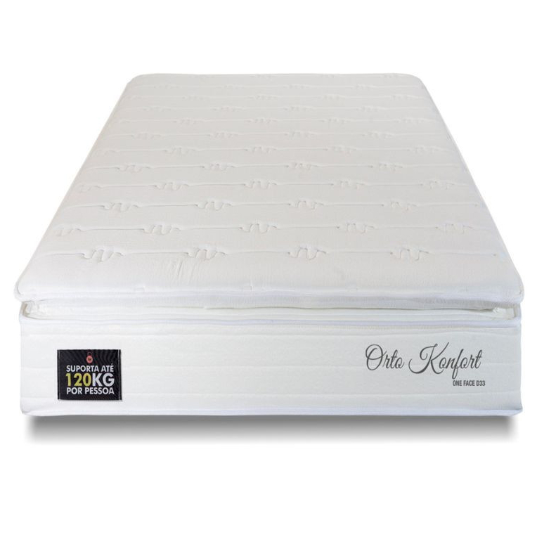 Conjunto Box Baú Solteiro Hellen Ortopédico Konfort Espuma D33 Pillow Top 88x188x60cm
