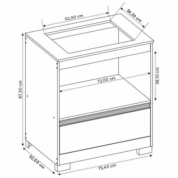 Balcão para Cooktop 4 Bocas com Gavetão Notável Móveis