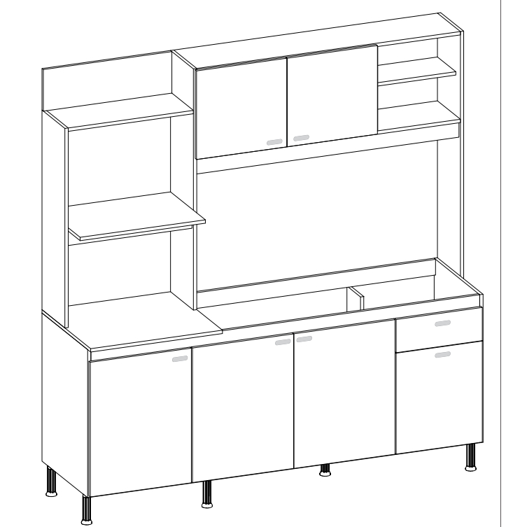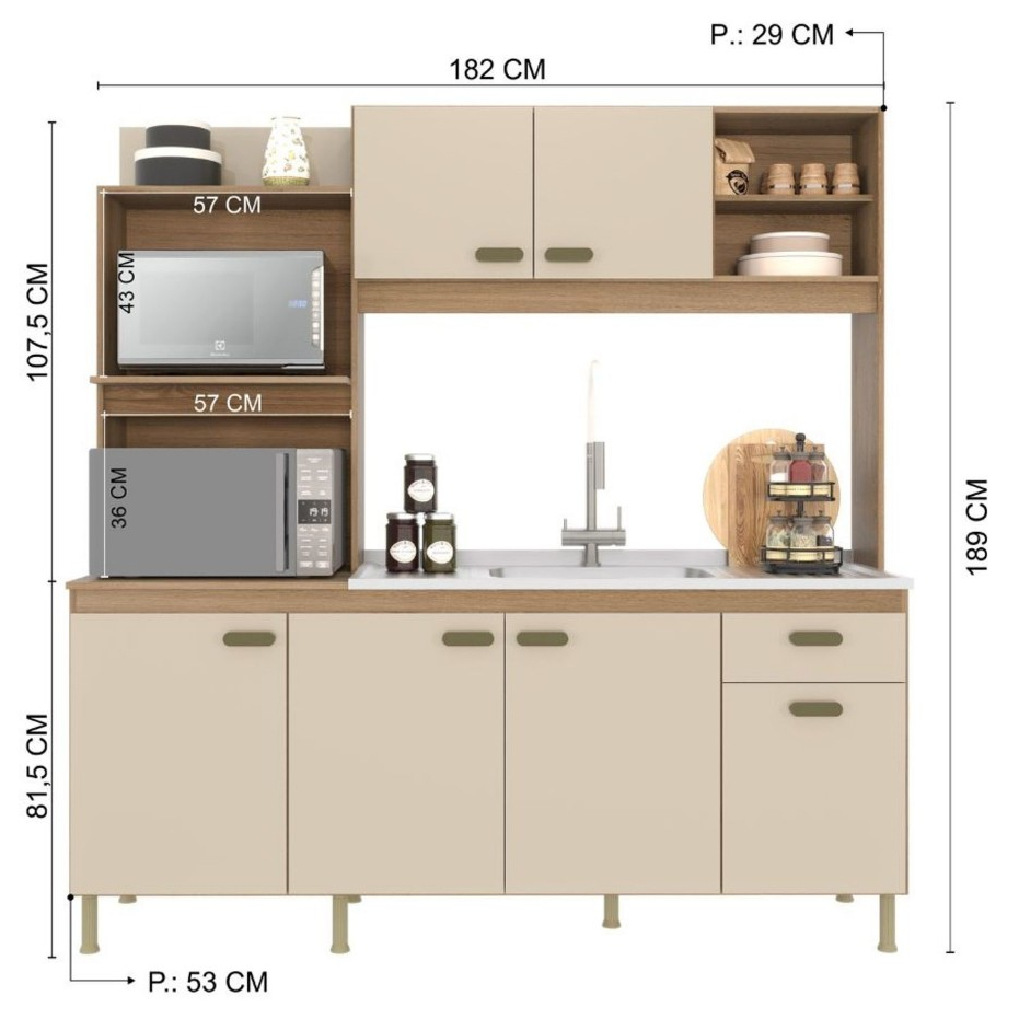 Cozinha Indekes Sevilha - 6 Portas e 1 Gaveta 1,82m, sem tampo