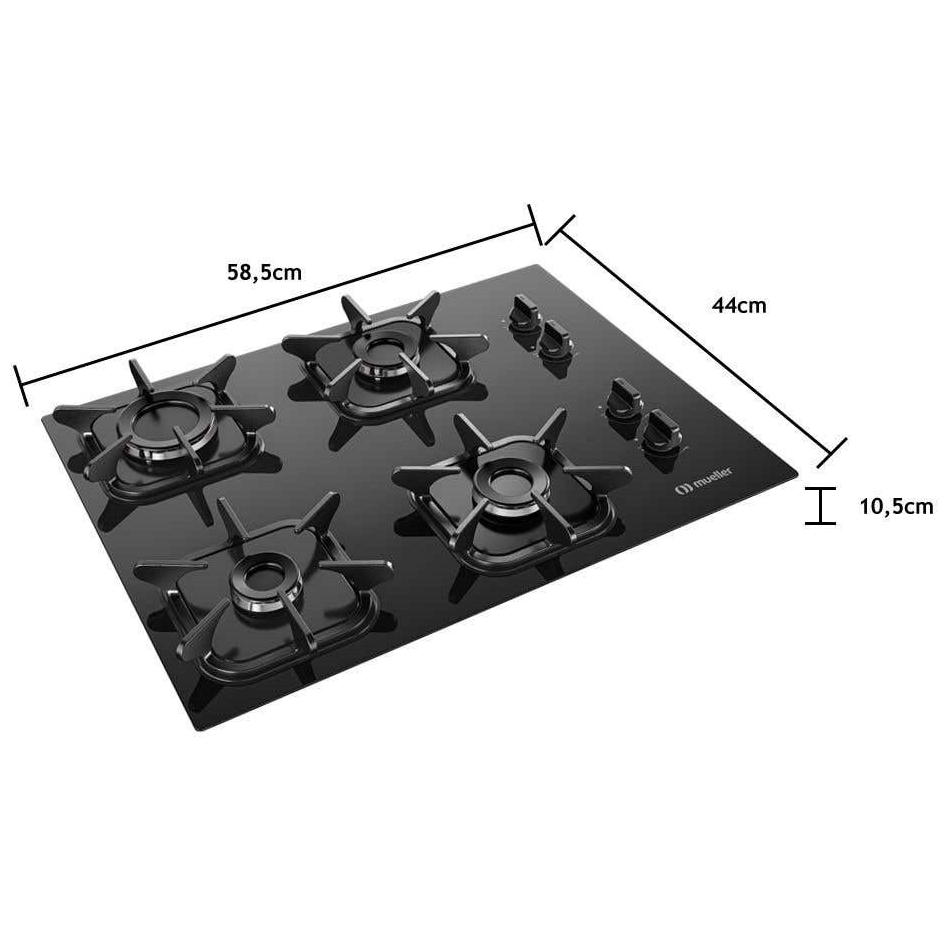 Cooktop Mueller 4 Bocas com Queimador Ultra Chama e Grades de Ferro Fundido - Bivolt