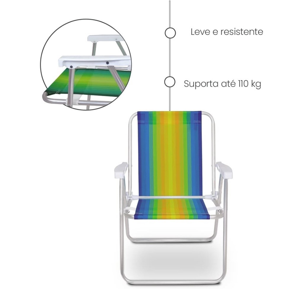 Cadeira De Praia MOR Alta de Alumínio - Cores sortidas