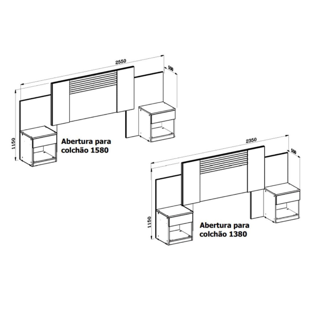 Cabeceira Moval Araguaia - acompanha 2 mesas com gaveta - Montagem Flex