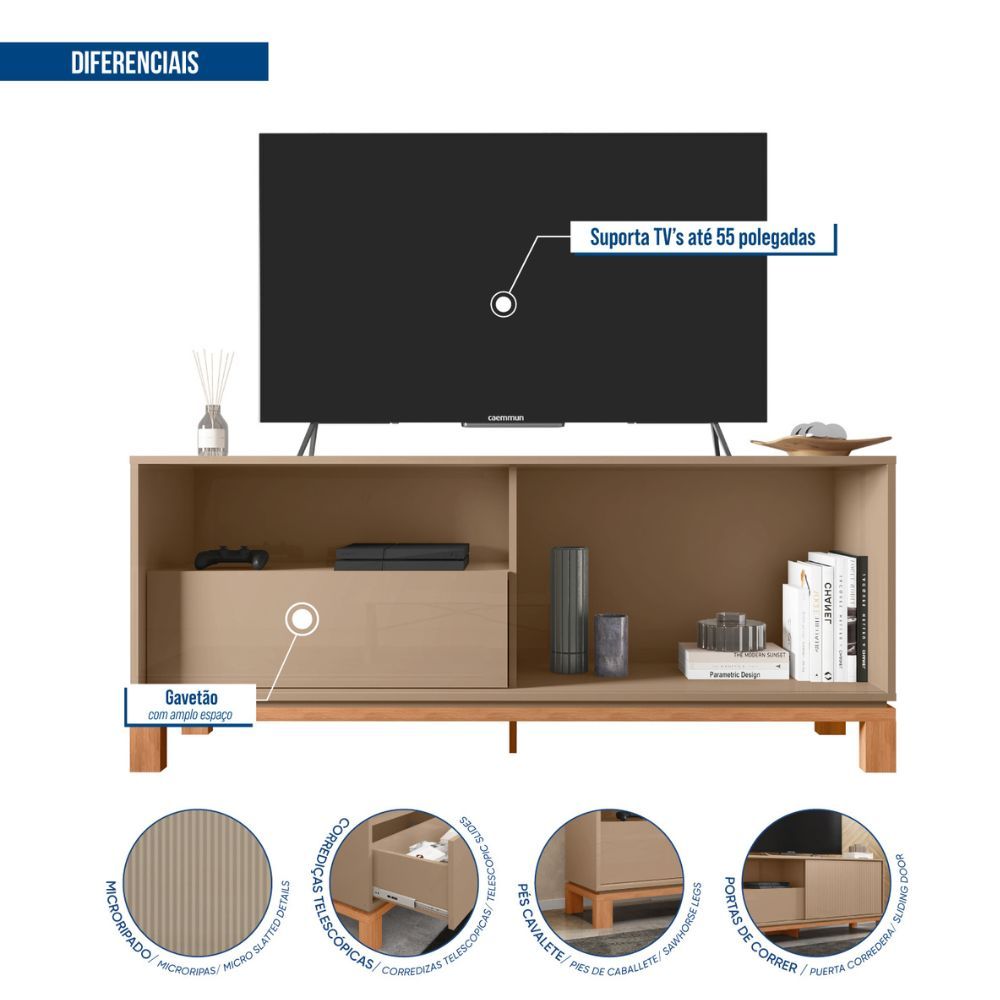 Rack Bancada Para TV Até 55 Polegadas Mondrian Caemmun