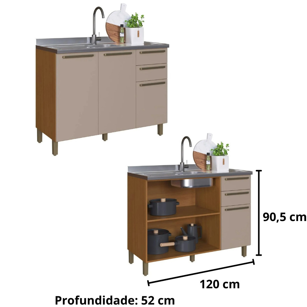 Cozinha Modulada sem Tampo 5 Peças 11 Portas 3 Gavetas Indekes Imperial