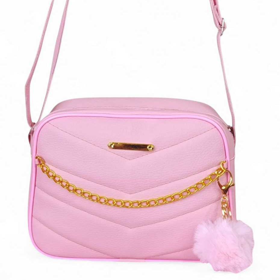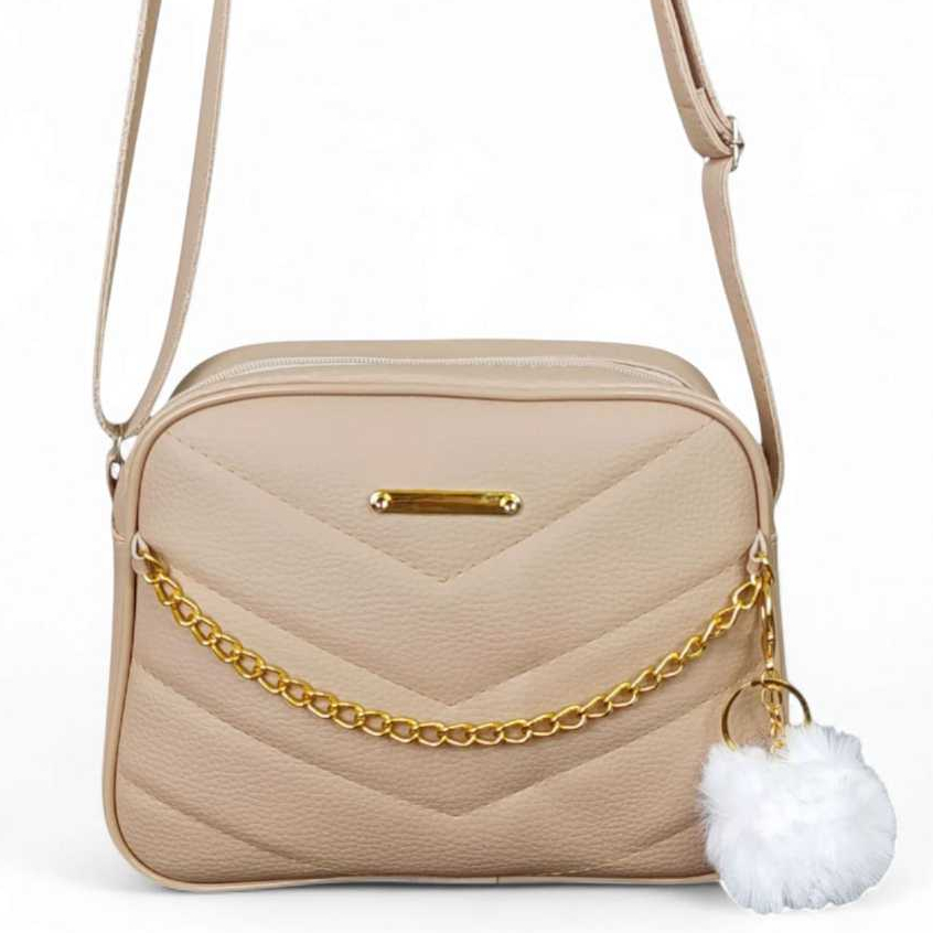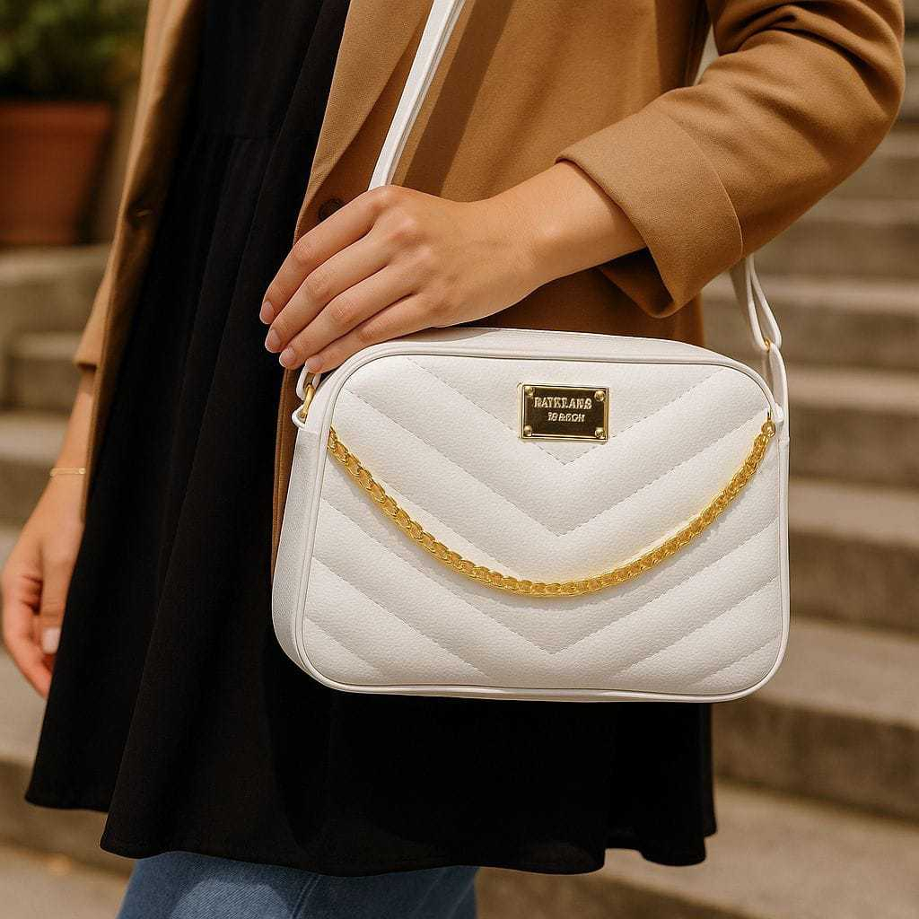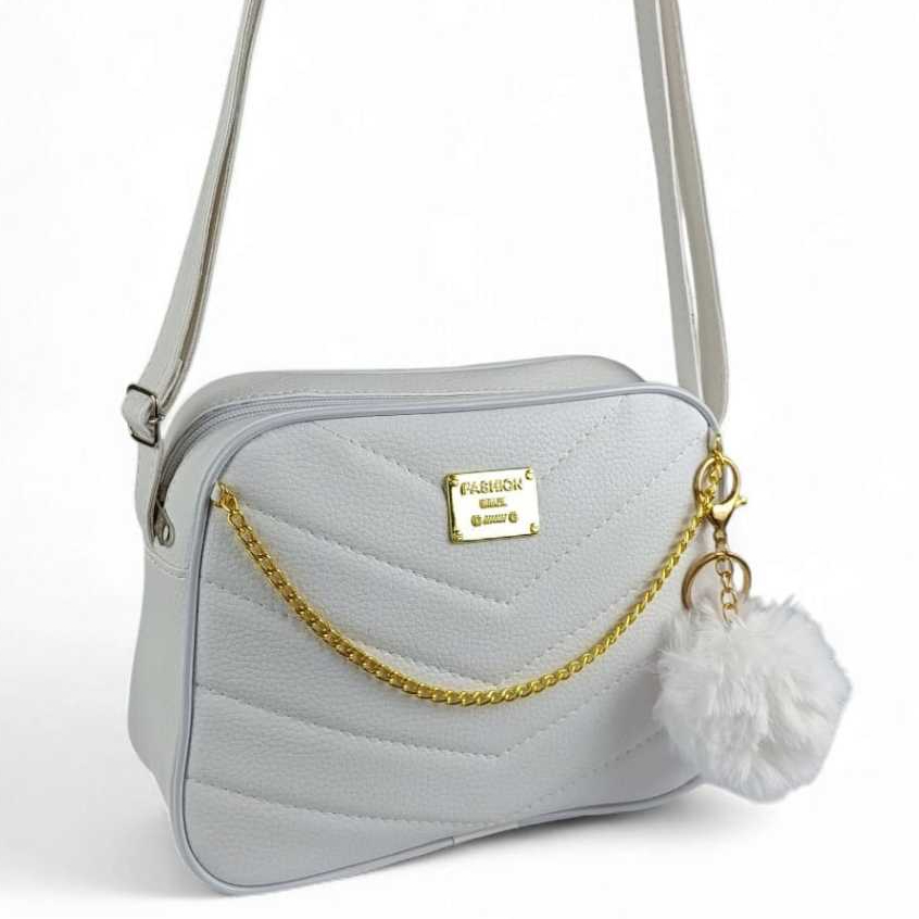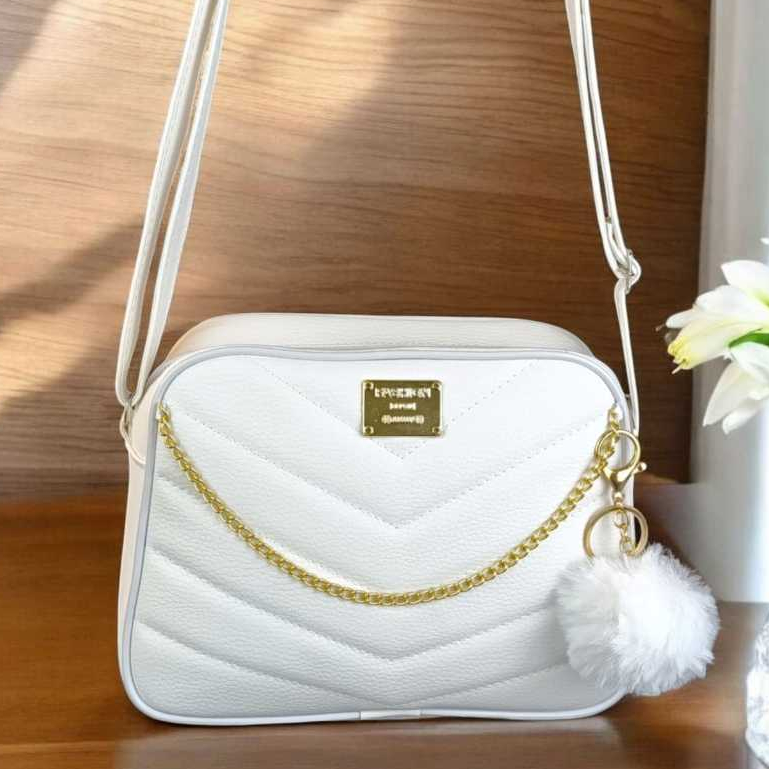 Bolsa Branca Com Corrente Elegante Transversal + Chaveiro Luxo