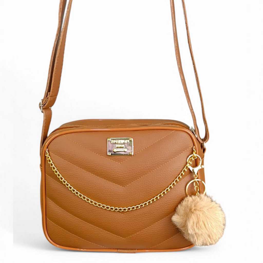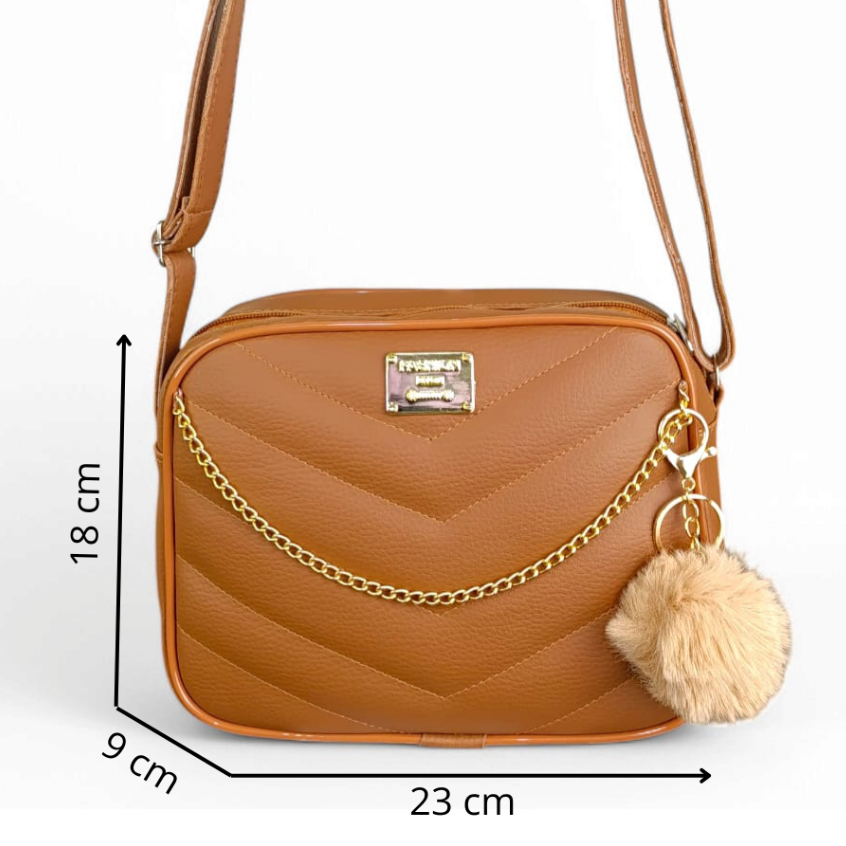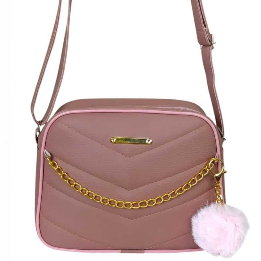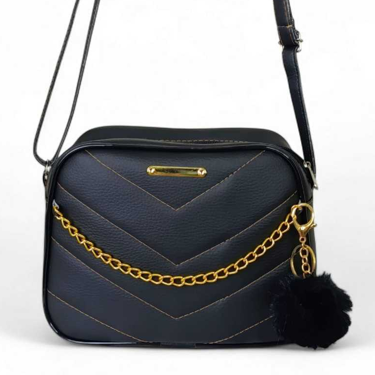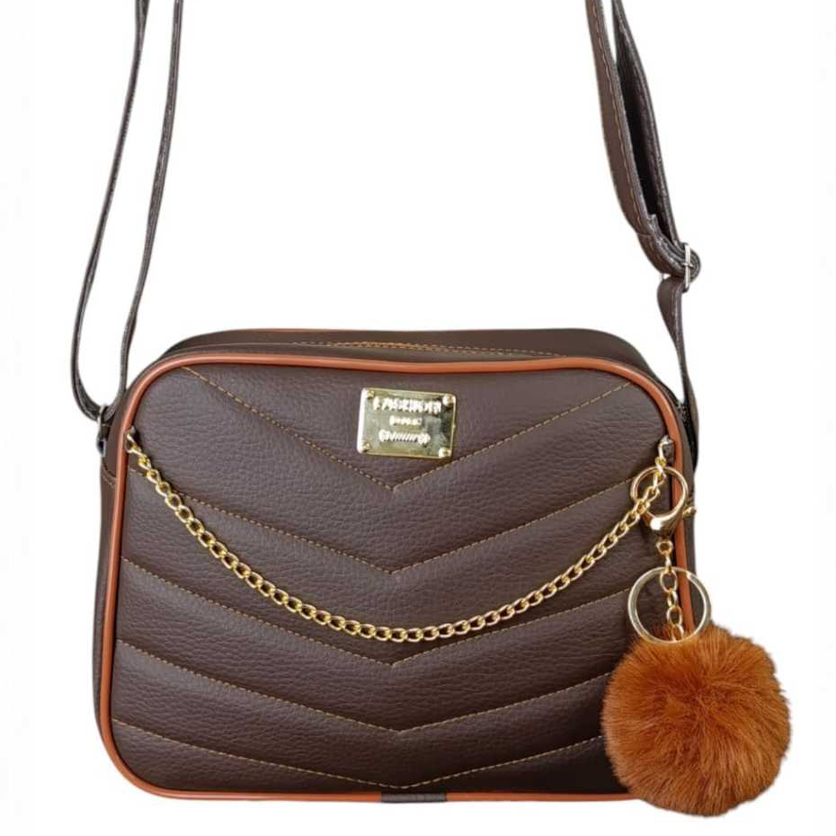 Bolsa Branca Com Corrente Elegante Transversal + Chaveiro Luxo