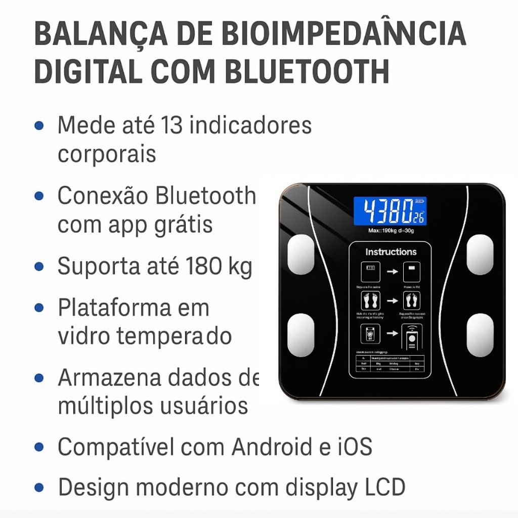 Balança Bioimpedancia Digital Bluetooth Corporal até 180kg Resultado Pelo Celular + Pilhas