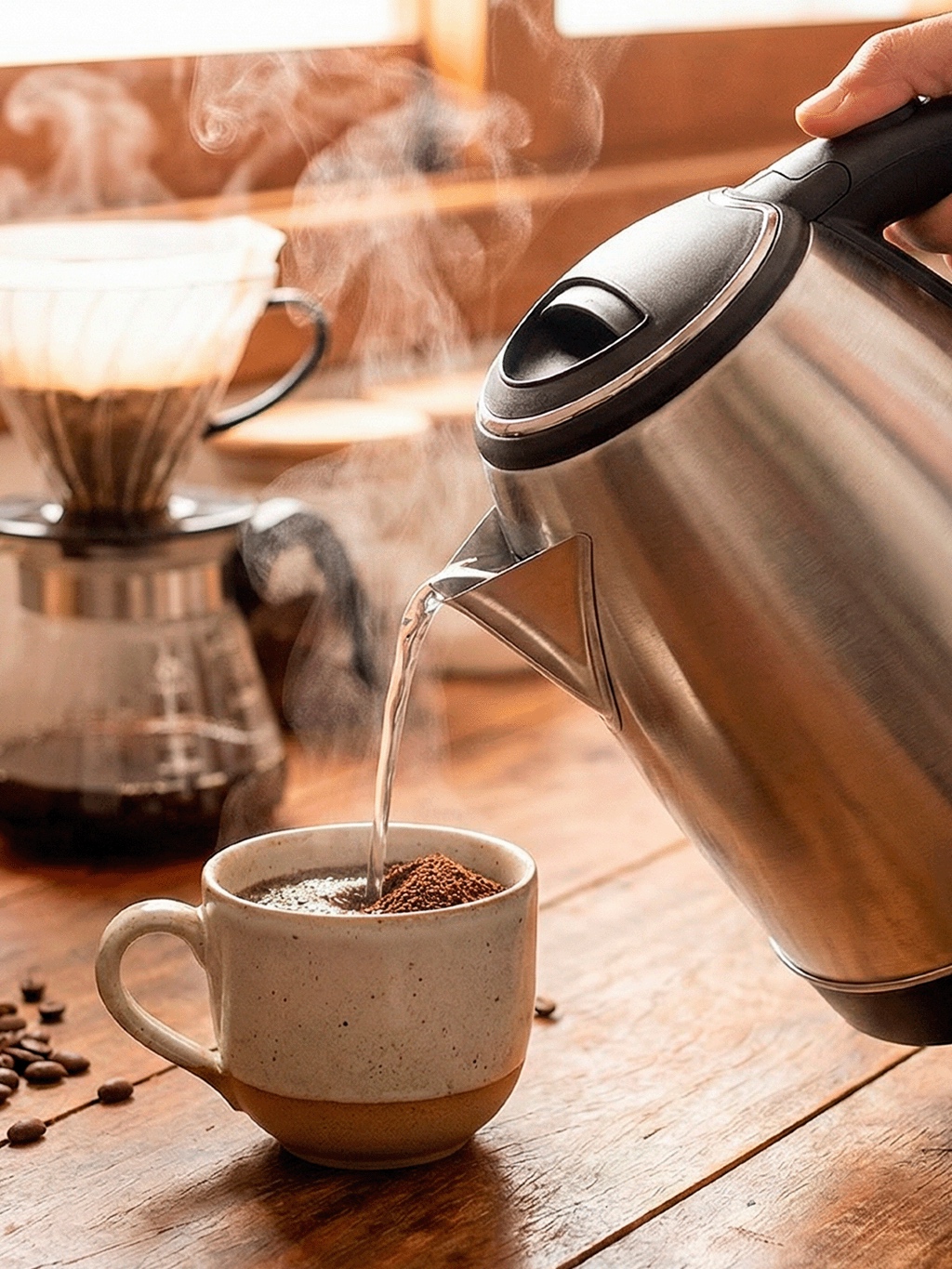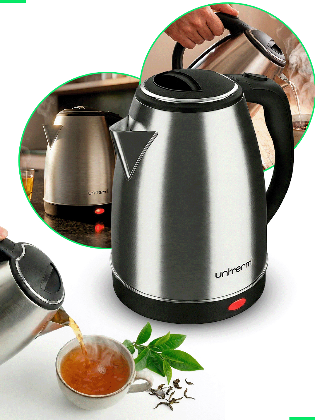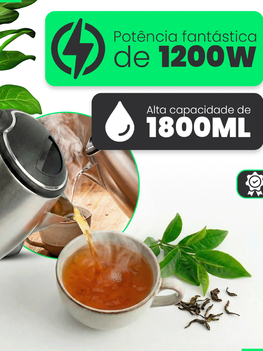 Chaleira Elétrica 1,8 Litros Térmica Inox Bule Com Tampa Ideal para Agua, Chá, Café e Chimarrão Com Base Giratória