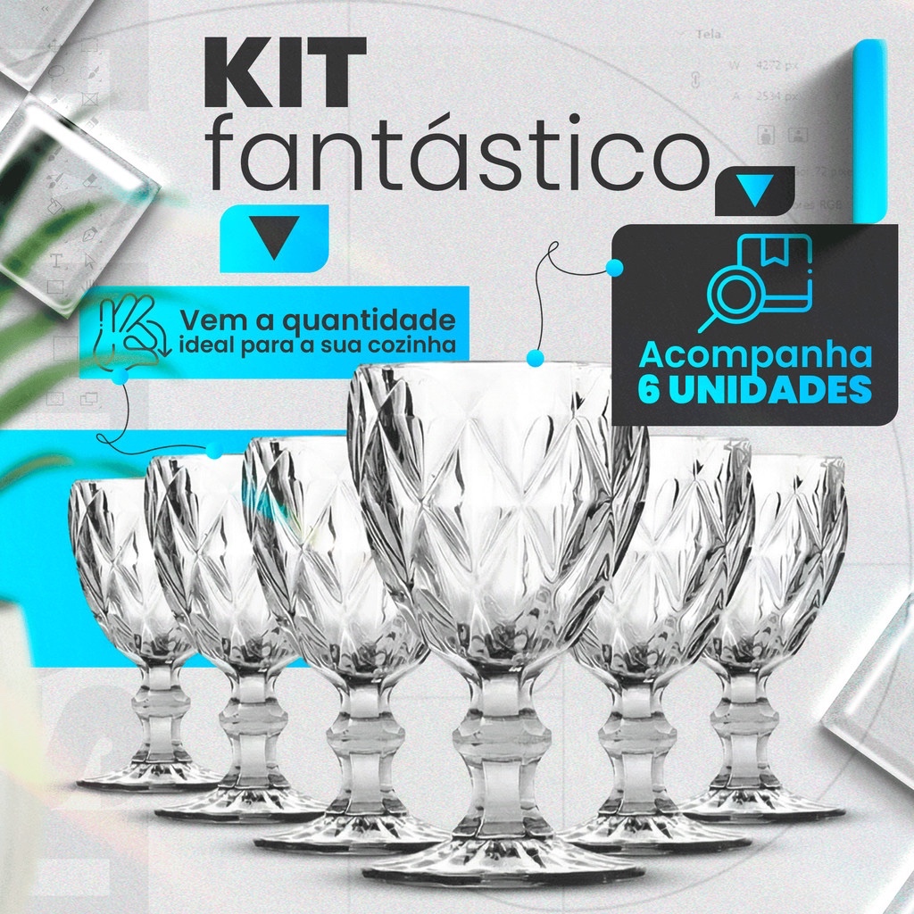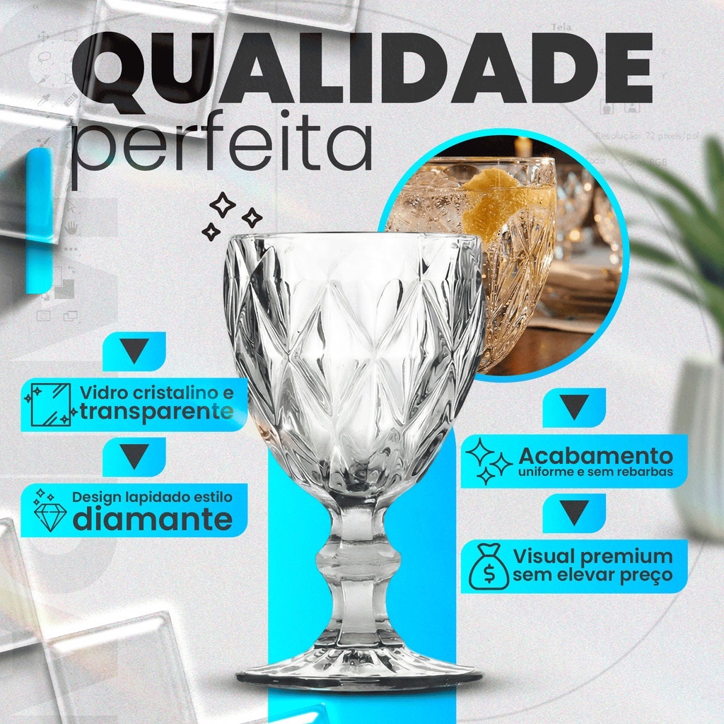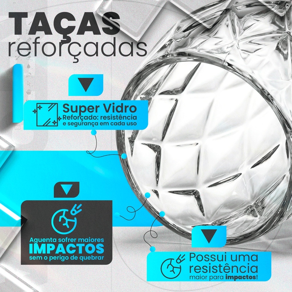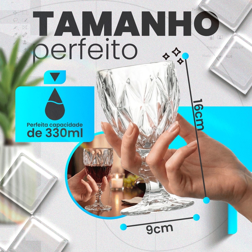 Jogo de Taças 330ml Copo Diamante Copo Vidro Transparente Bico De Jaca Kit Diamond