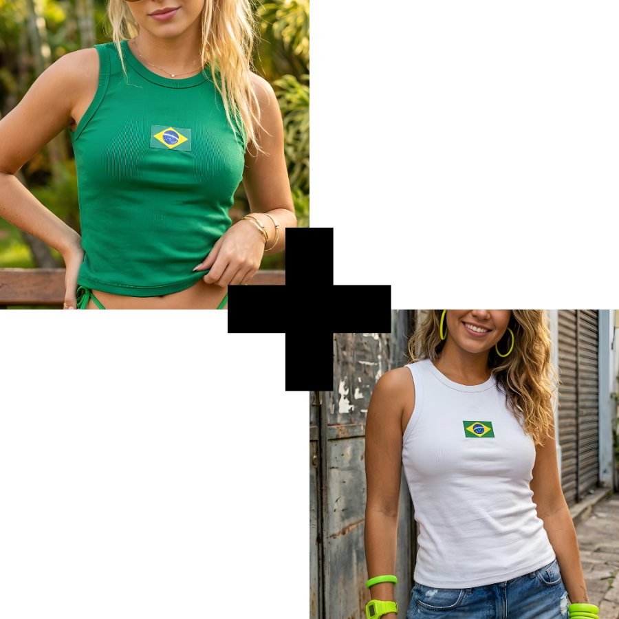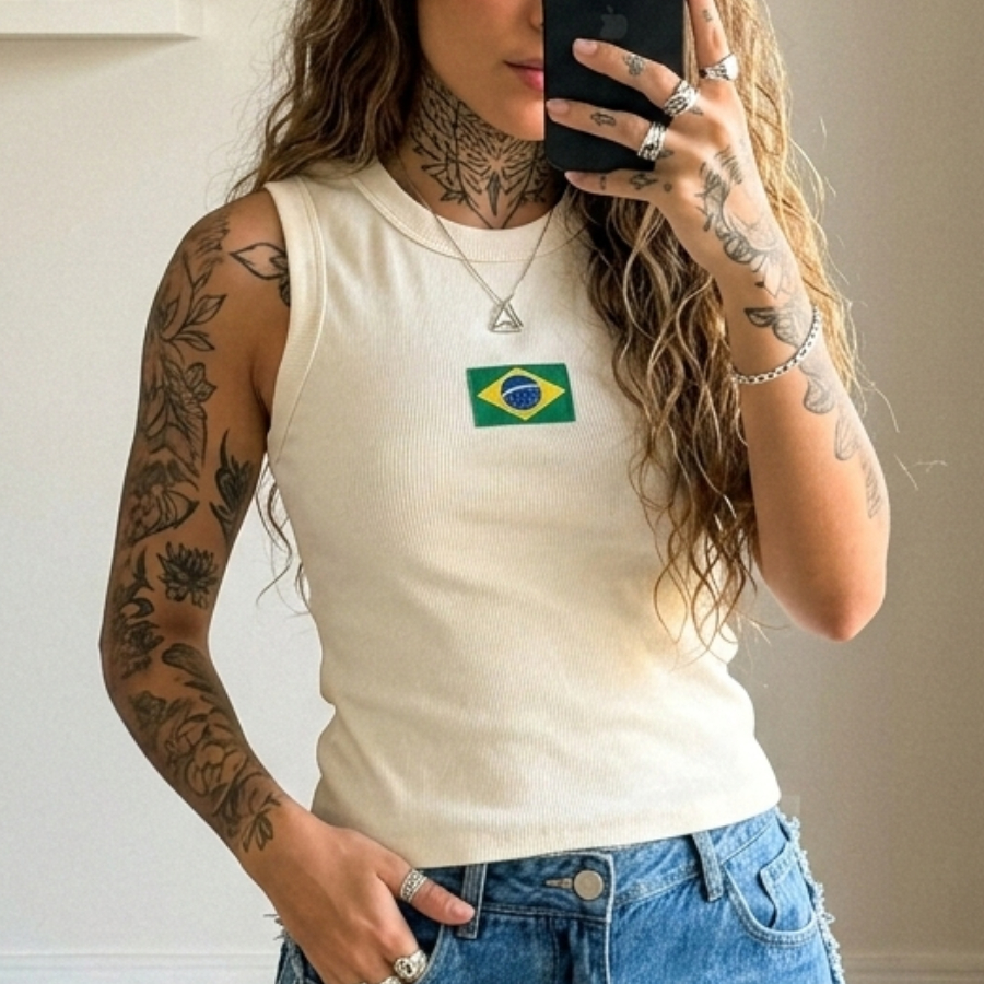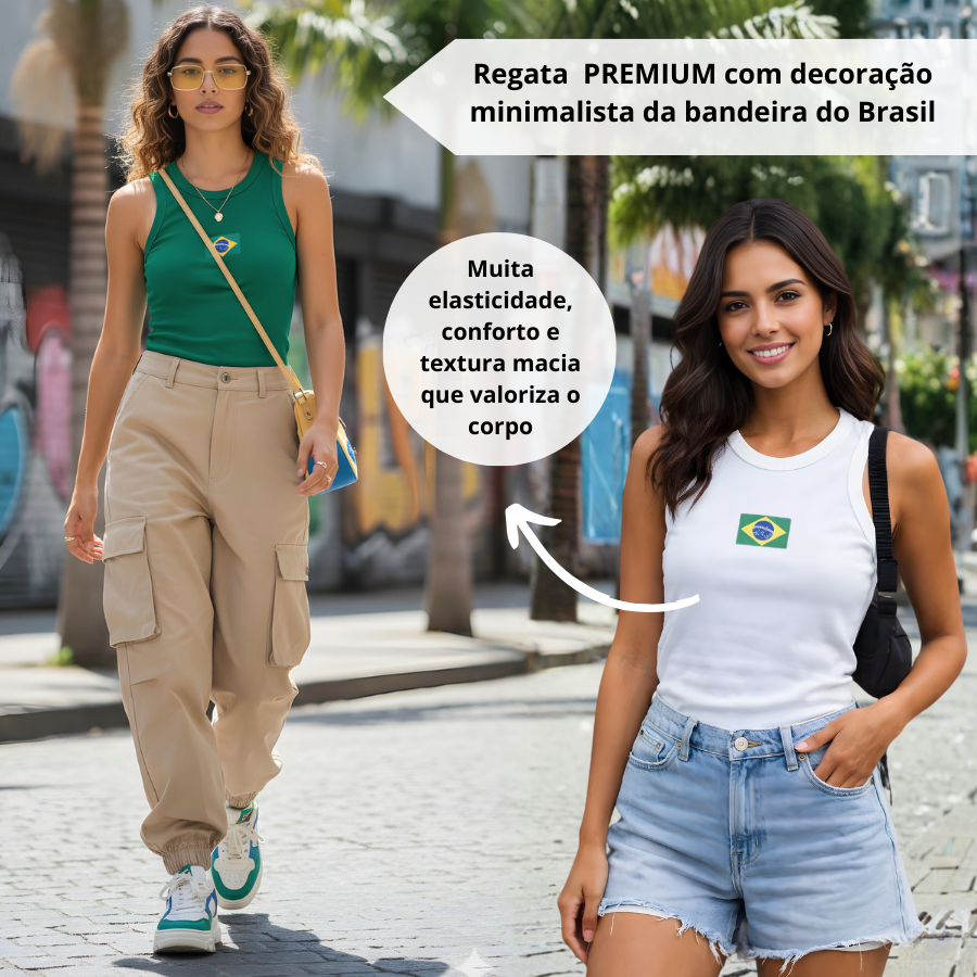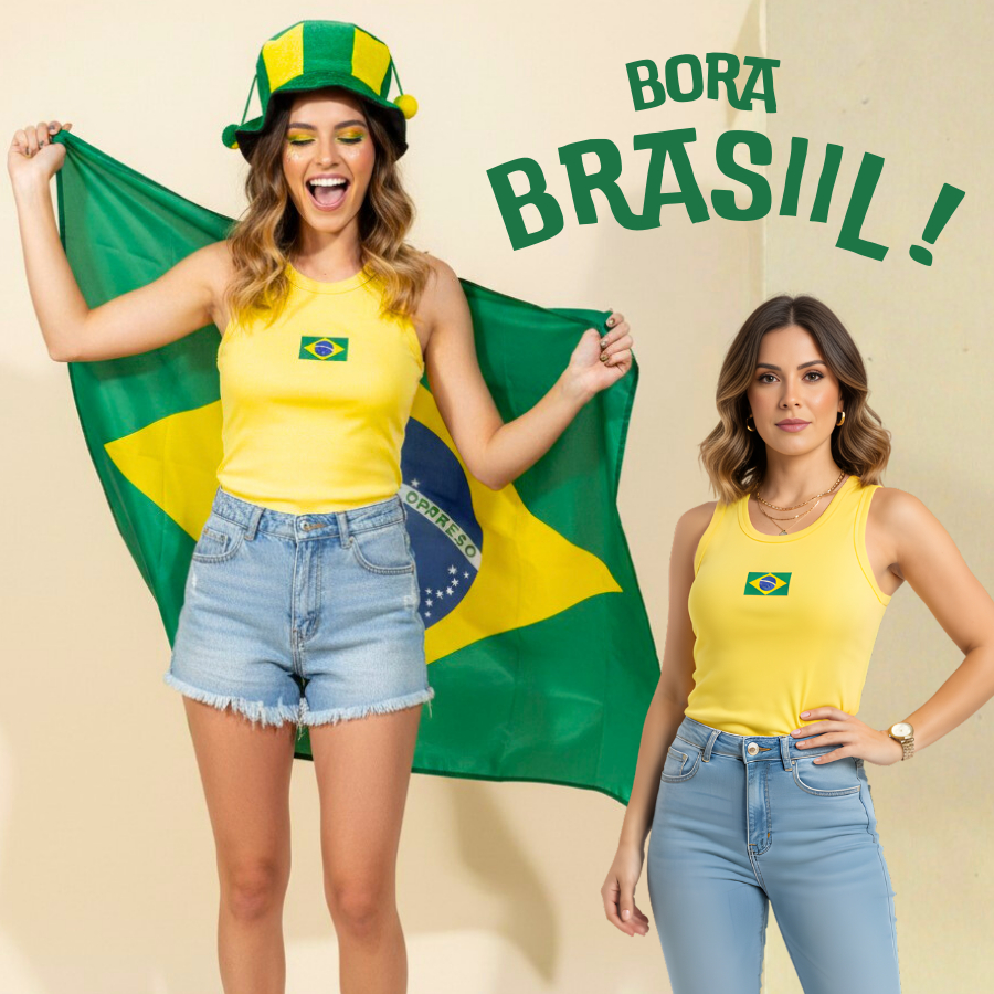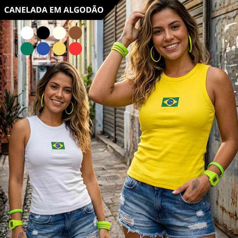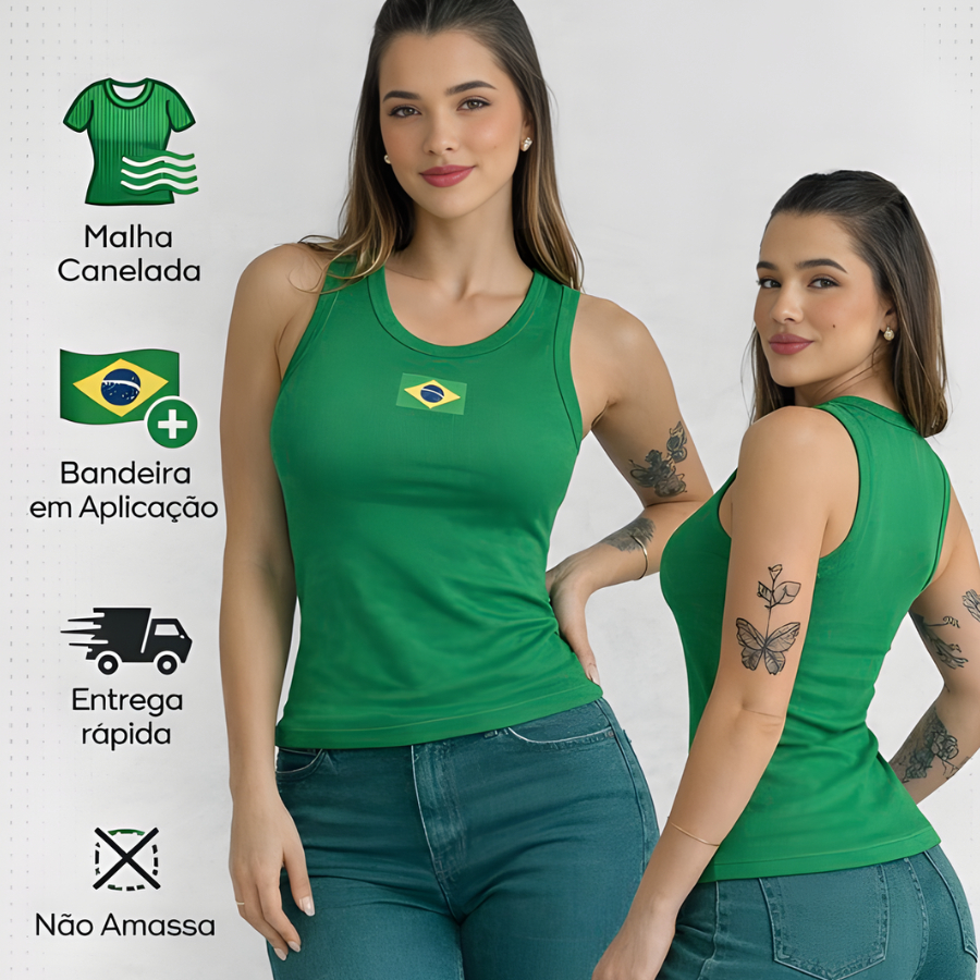 Regata Blusa Feminina Brasil Core Copa 2026 | Canelada Ribana Moda Americana