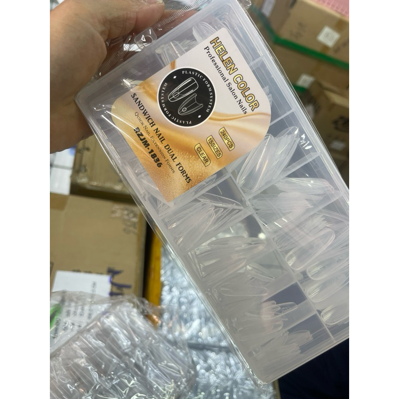 Molde sanduíche formas de unhas duplas 240 peças extensões caixão amêndoa molde superior