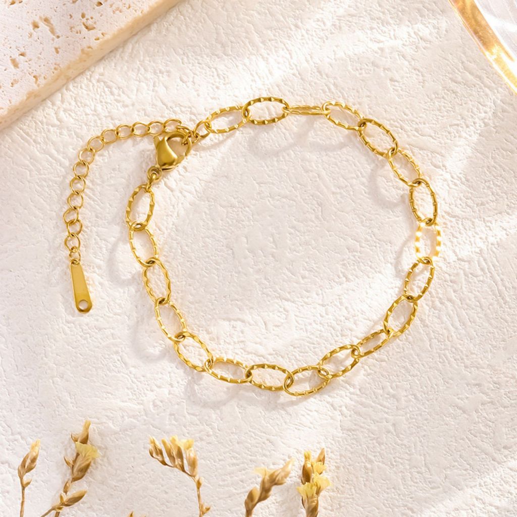 Conjunto 2 peca Colar e pulseria feminino em relevo novo aço titânio 18K ouro luz nicho de luxo design simples