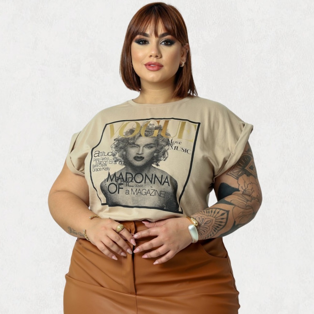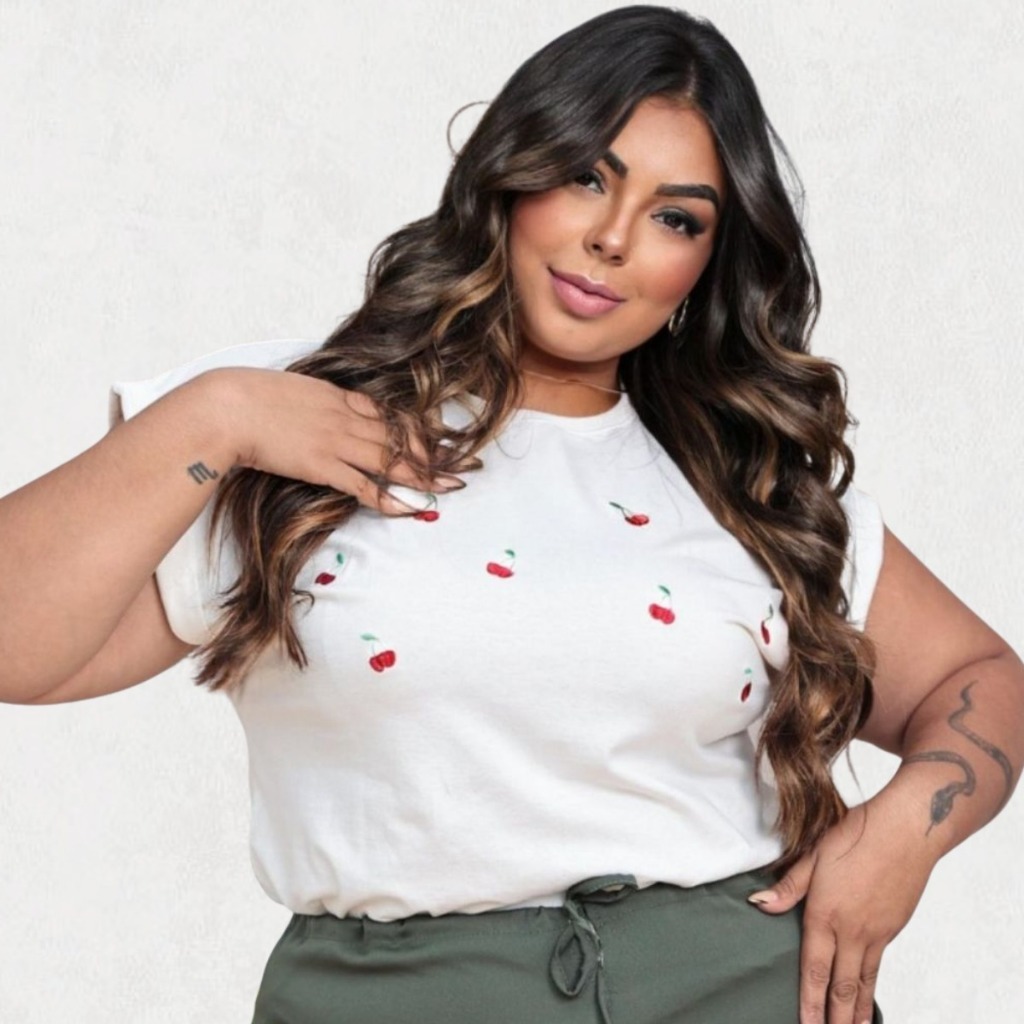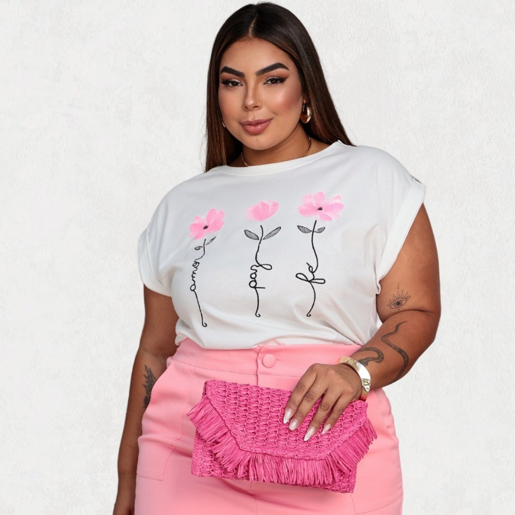 Blusa Feminina Plus Size T-Shirt G2 com estampas e bordados variados 100% Algodão