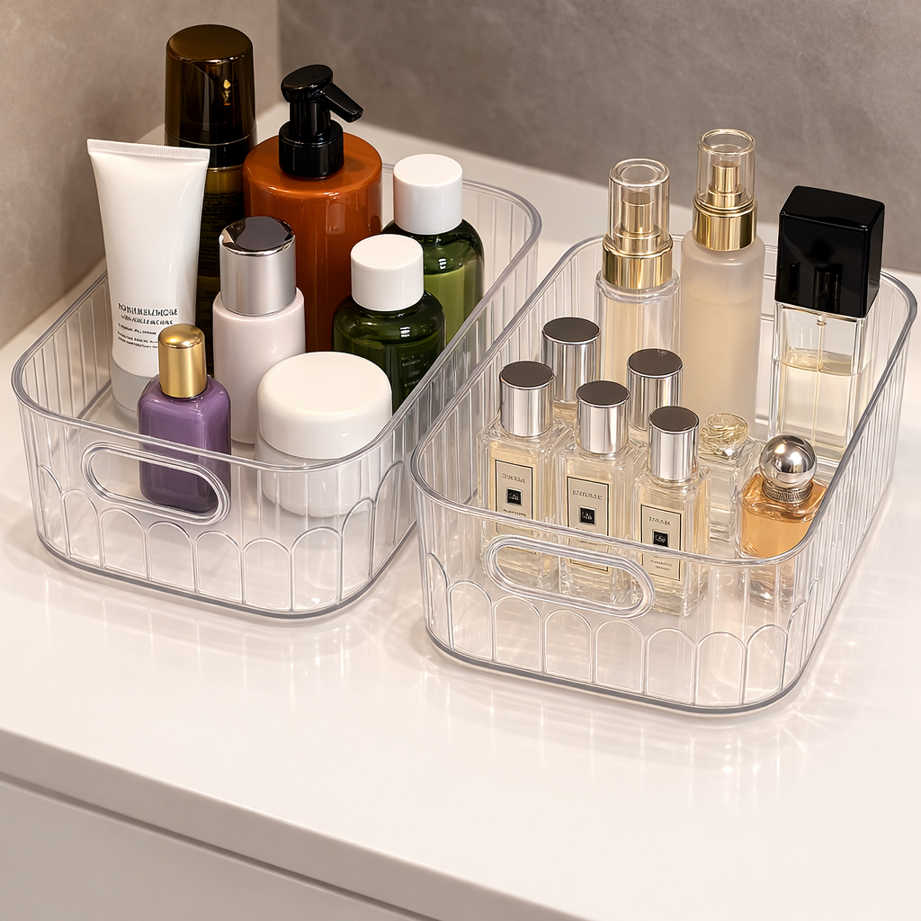 Kit Caixa de Armazenamento Decorativa Transparente Com Alça Banheiro Penteadeira Multiuso