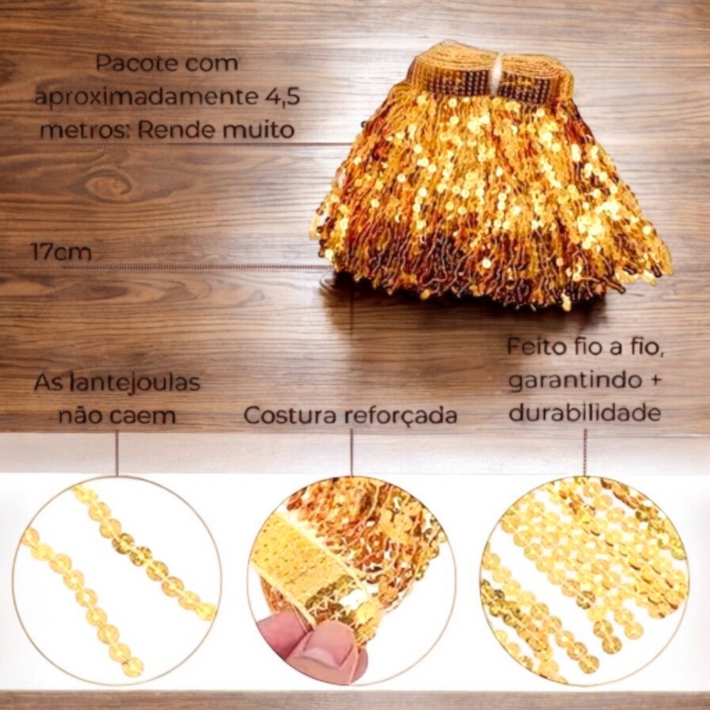 Franja De Paetê Para Carnaval Em Lantejoulas Customização Abadá Cropped Saiá 20Cm 1 Metro
