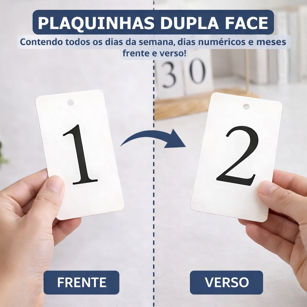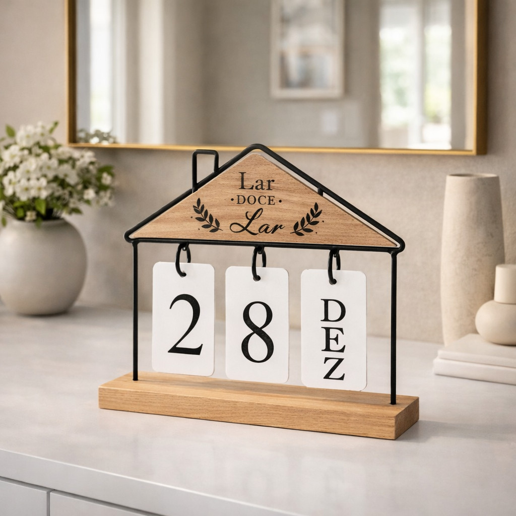 Calendário de Mesa Decorativo com Plaquinhas Preto Dourado Permanente Escritório Clínica