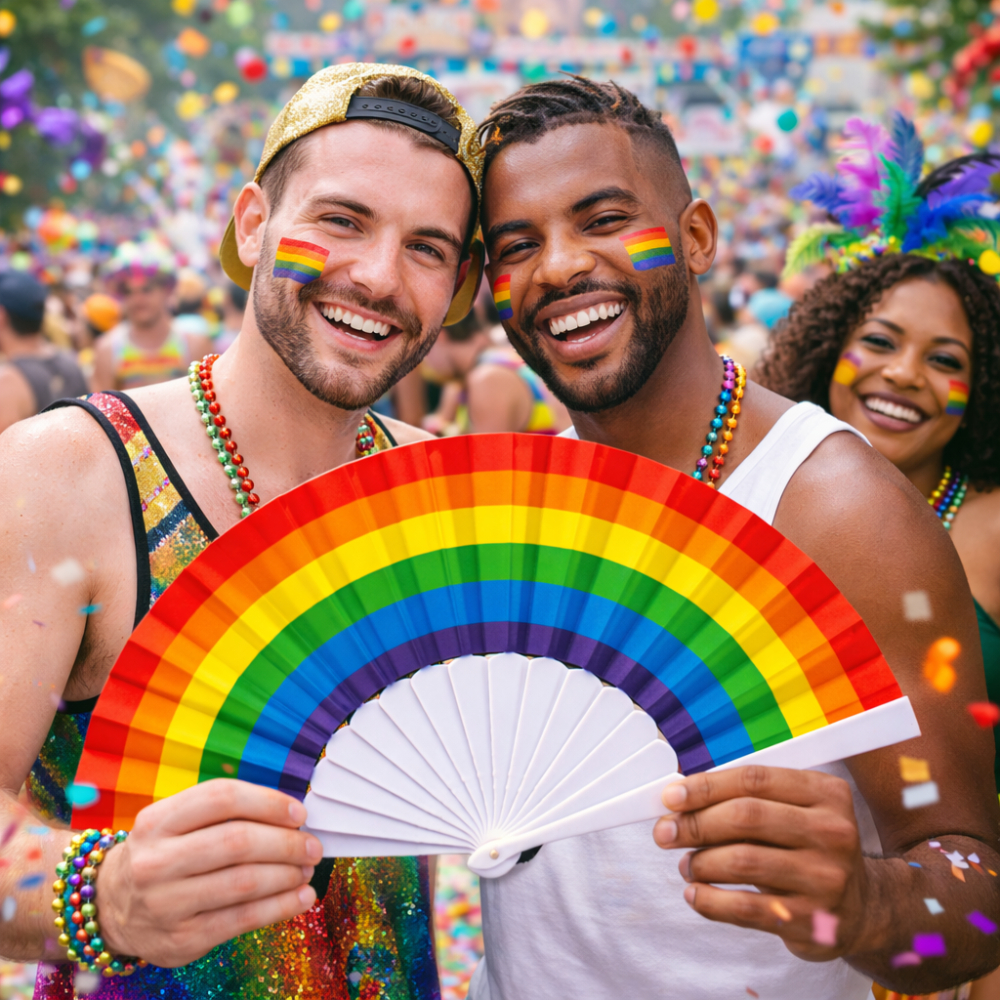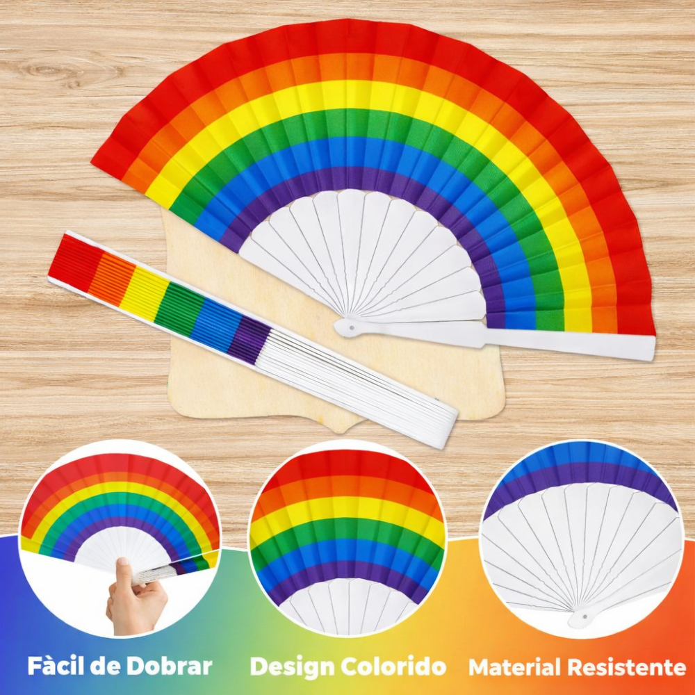 Leque de Mão Arco-Íris LGBTQIA+ Carnaval Festa