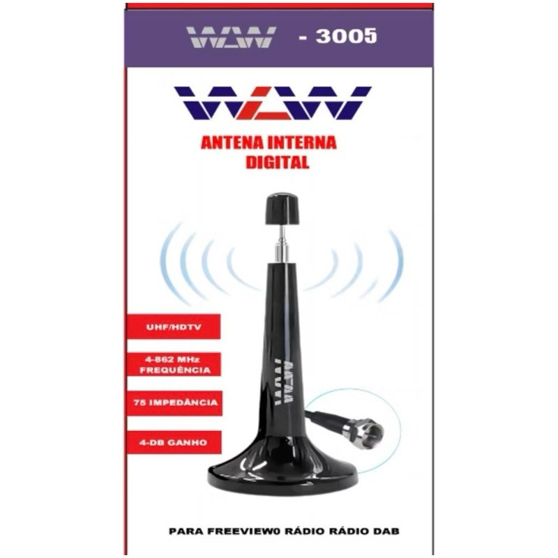 Antena Digital Televisao Hdtv Interna Fio 5 metro 4k 2k full hd