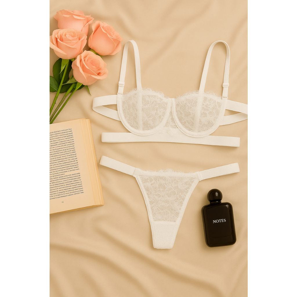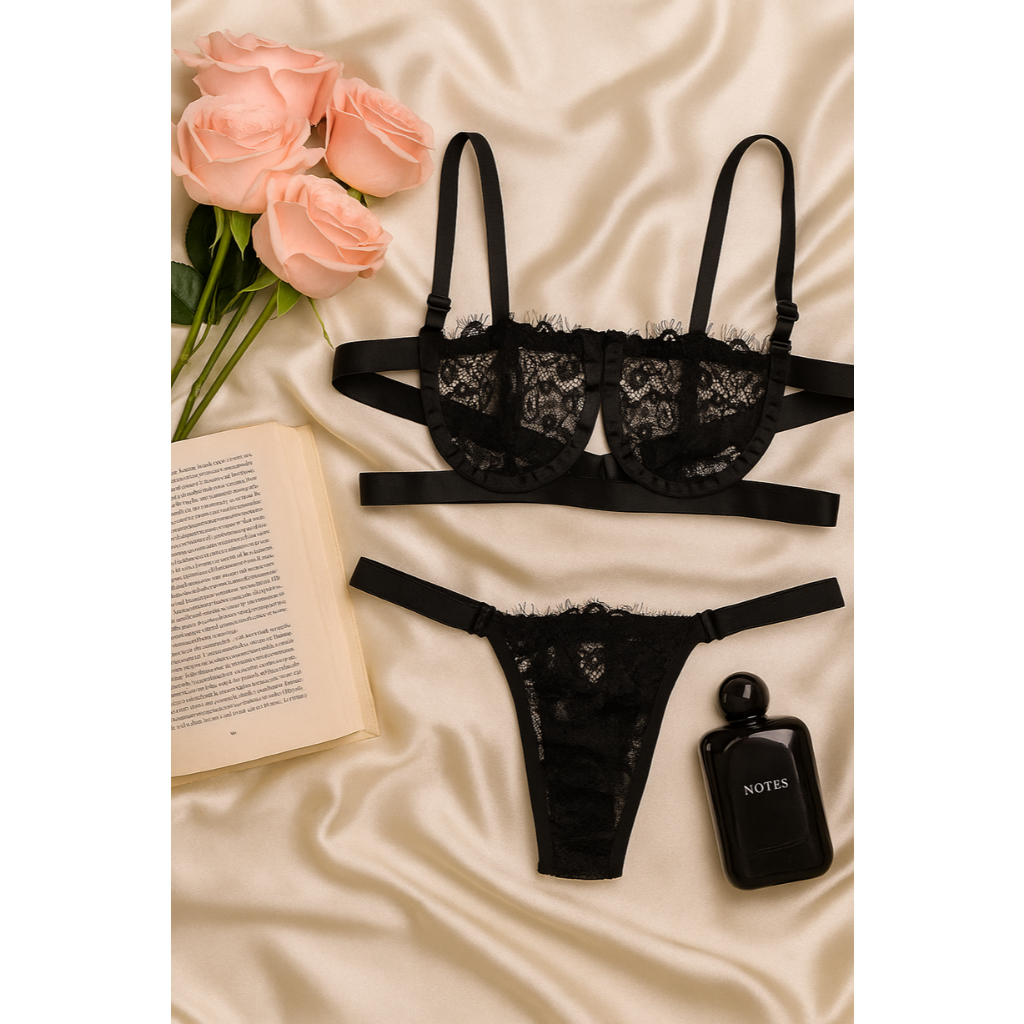 Conjunto Sensual Meia Taça Renda Premium Lingerie Feminino Ousado Sexy Sutiã Com Aro Calcinha