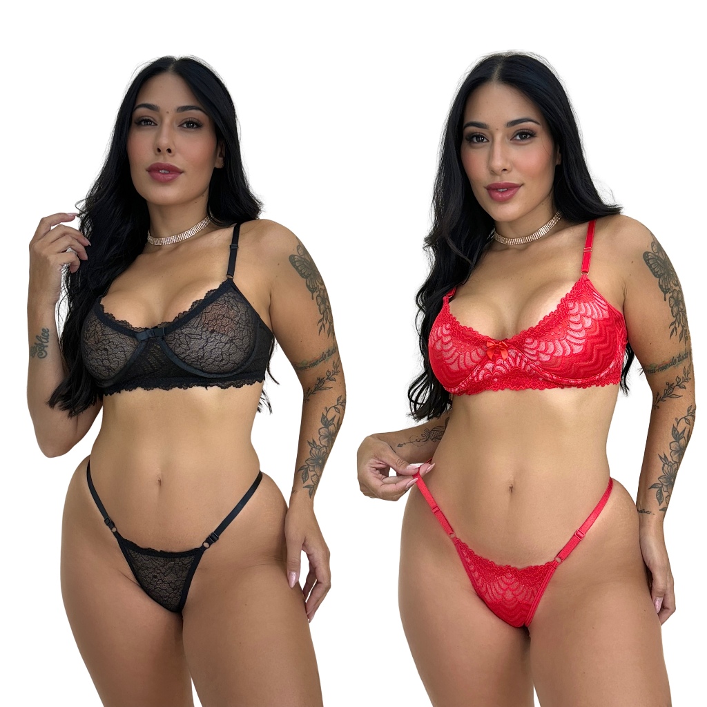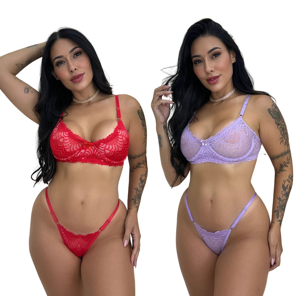 Kit 2 Conjunto Sensual Conforto Renda Premium Lingerie Feminino Ousado Sexy Sutiã Sem Bojo Calcinha