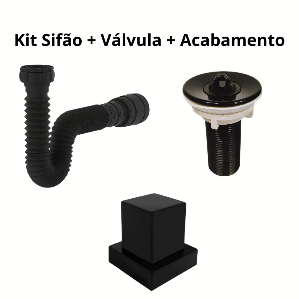 KIT Sifão + Válvula Lavatório 7/8" + Acabamento - ABS Preto