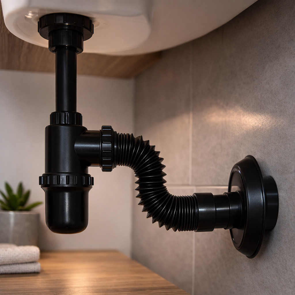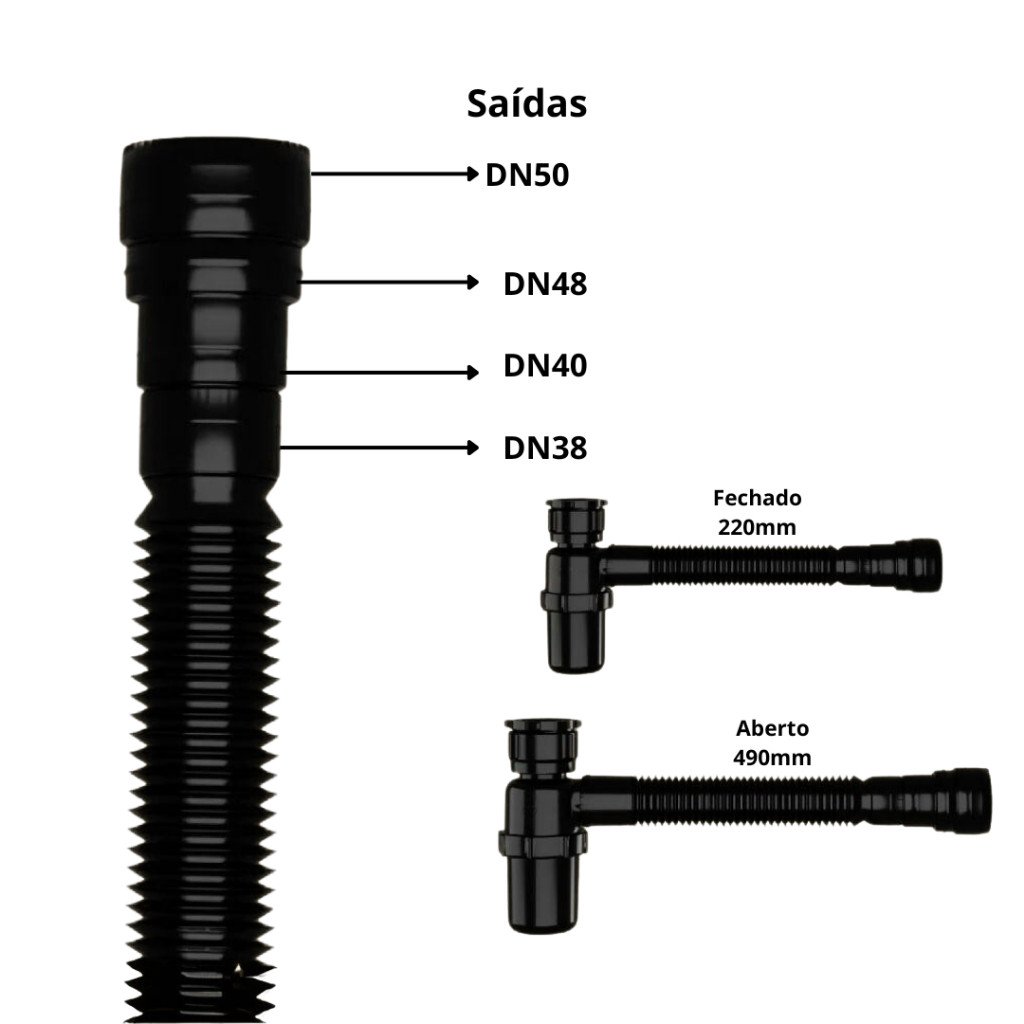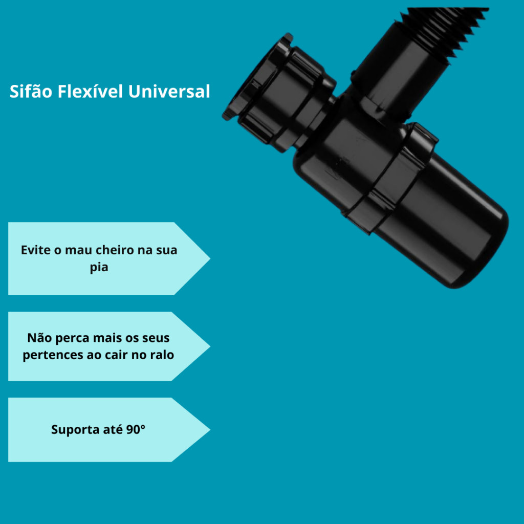 Sifão Flexivel Copo Preto para Lavatório Cuba Pia Tanque Saída