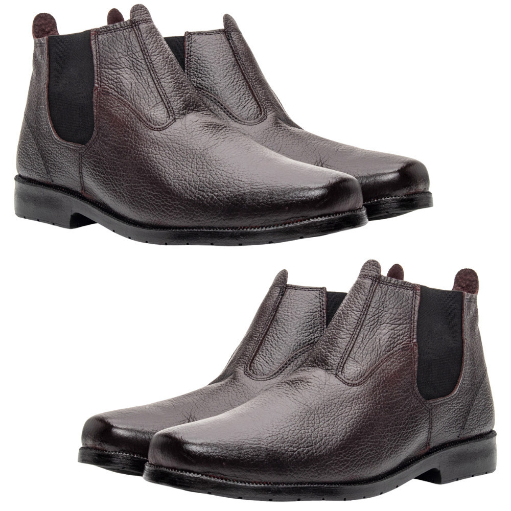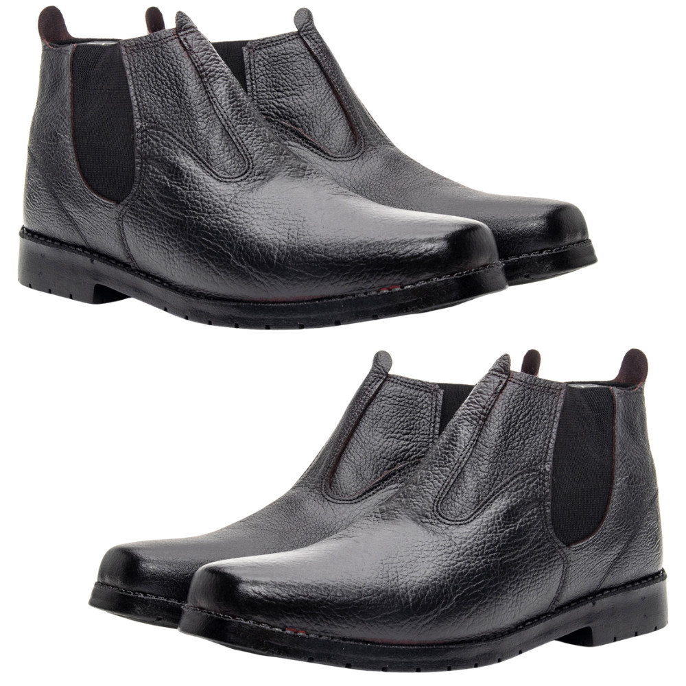 Kit 2 Pares Botina Masculina Couro Legitimo Reforçada Sola de Pneu Resistente!