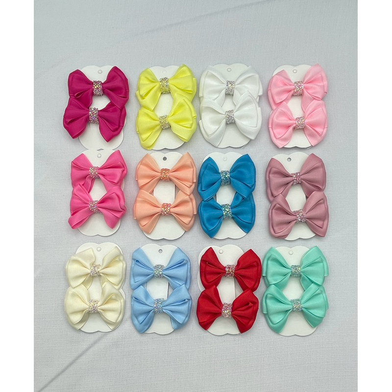 Kit 12 Pares de Laços Infantis (24 Unidades) – Luxo, Fita Gorgurão, Presilha Bico de Pato, Cores Sortidas