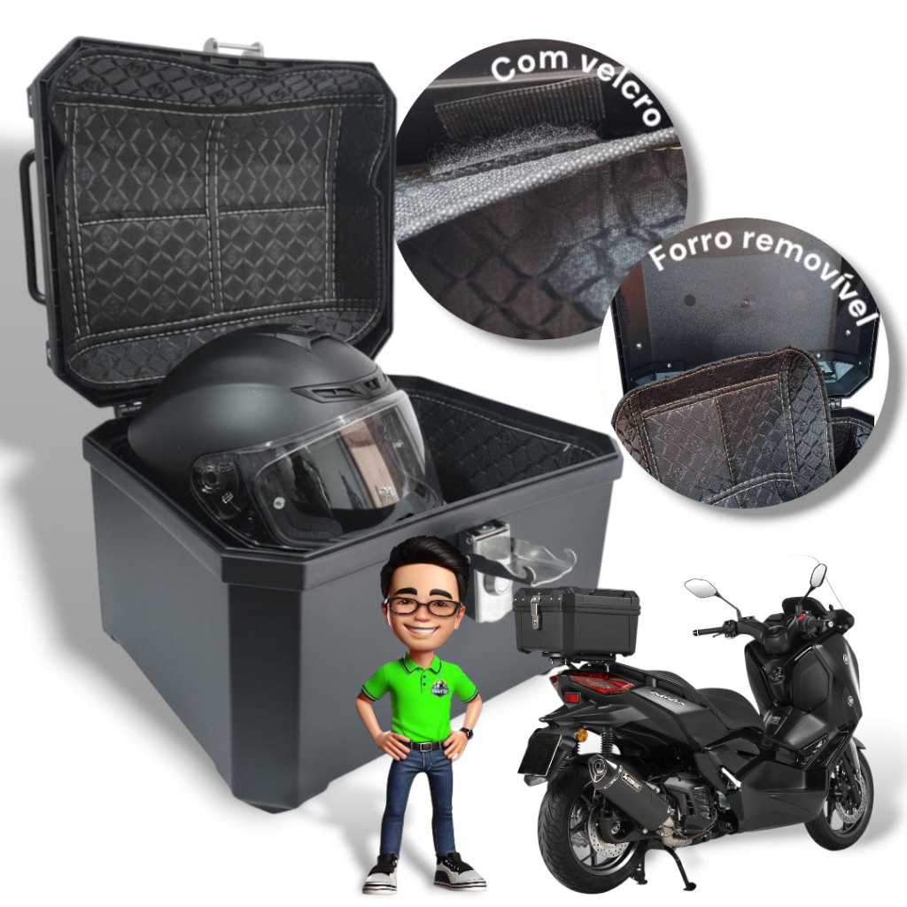 Baú Plástico Reforçado 45 litros Preto com Forro/Alça e Base