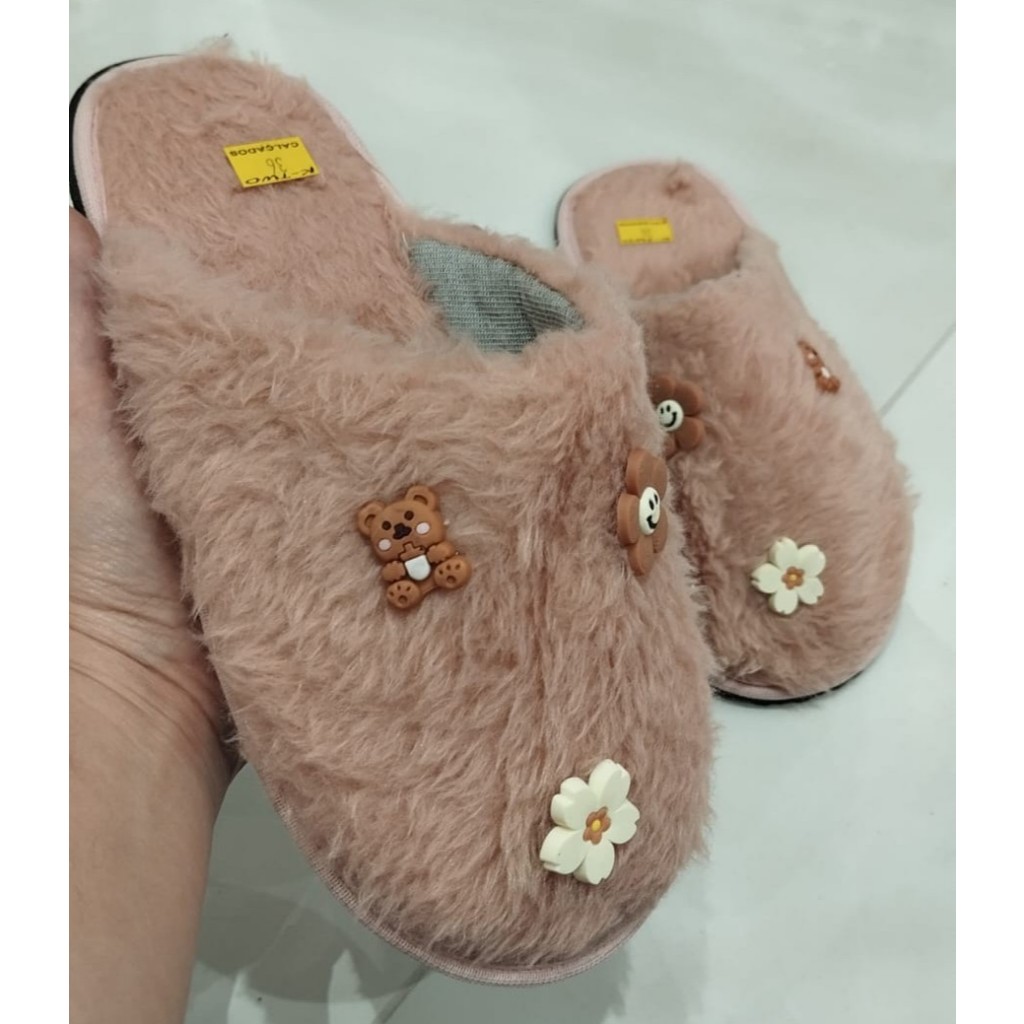Pantufa de Pelúcia Com Enfeites Sortidos Coloridos Confortável Antiderrapante Chinelo de Quarto