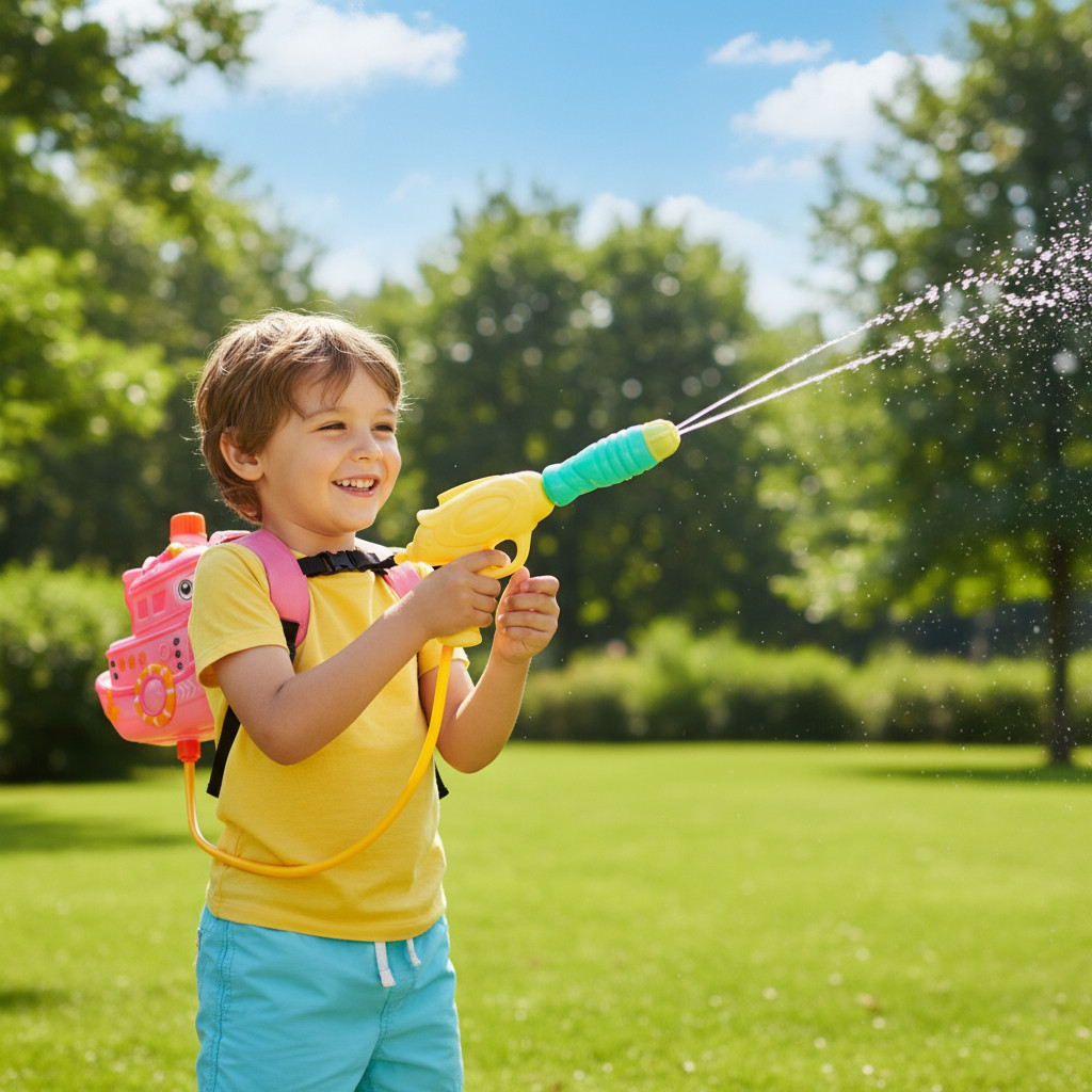 Arma de Água Infantil com Mochila Reservatório Lança Água Verão