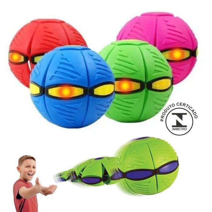 Brinquedo Infantil Bola Magica 2 em 1 Disco Voador Ufo Bola Vira Disco Fidget Com Led