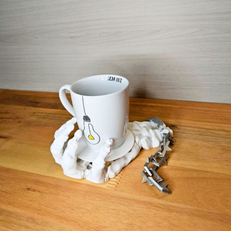 Lançamento Porta Copo Mão de Esqueleto Articulada Halloween Divertido Suporte Caneca Xícara Lata