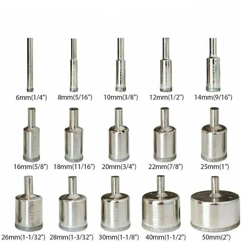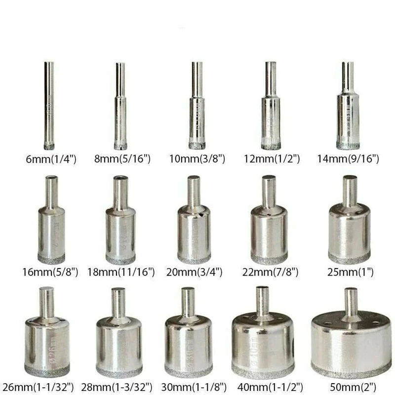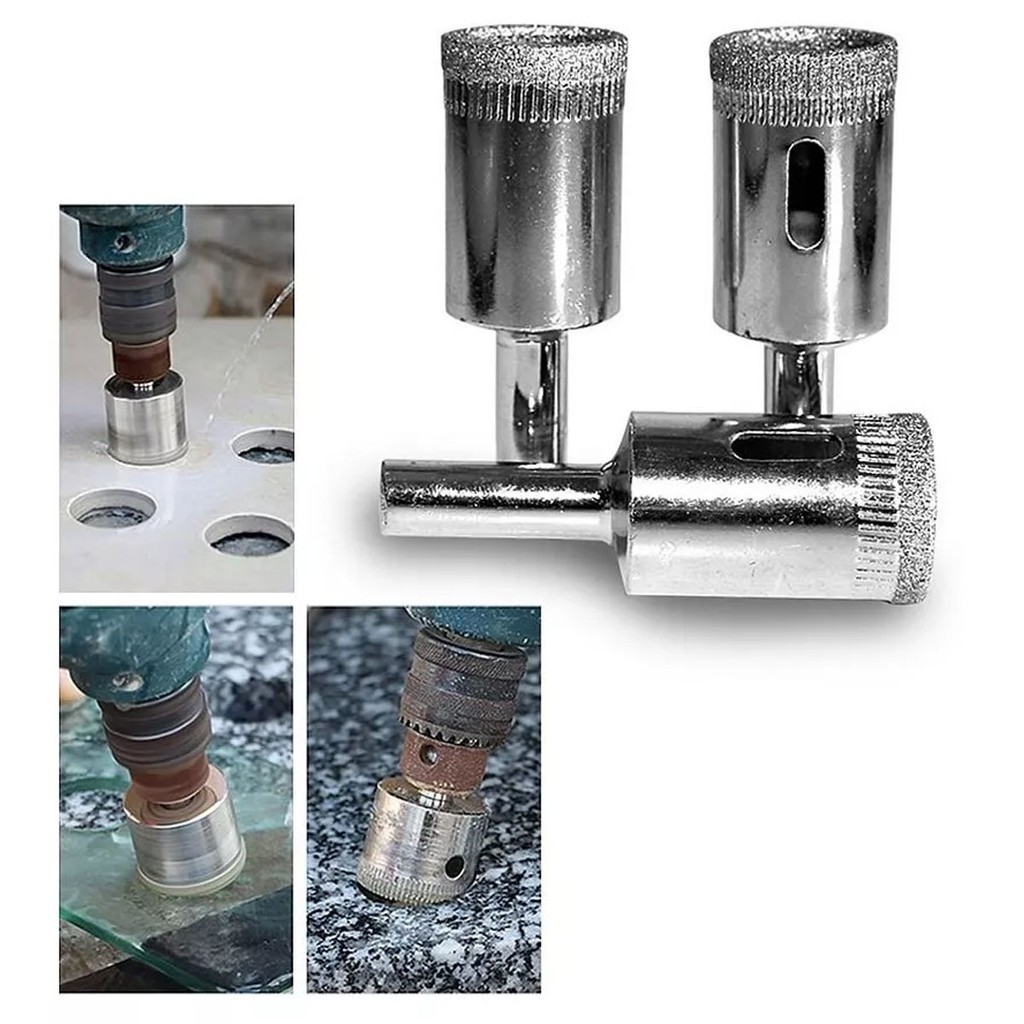 Jogo 15/20 Brocas Diamantadas Serra Copo furar Vidro Granito Ceramica 3 a 50 mm kit ferramentas