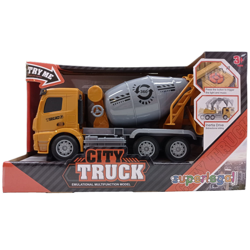 Caminhão de Fricção com Betoneira - City Truck - Luz e Som - 23 cm - Superlegal