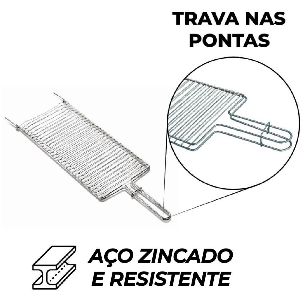 Grelha Dupla Folha Grande Churrasco Peixe Frango Linguiça Aço