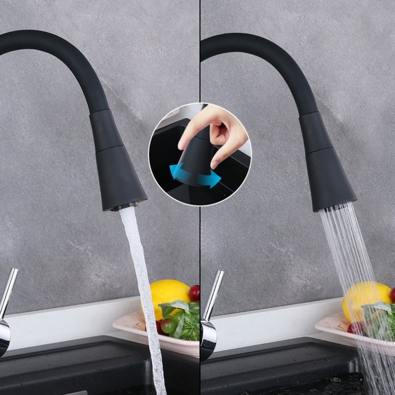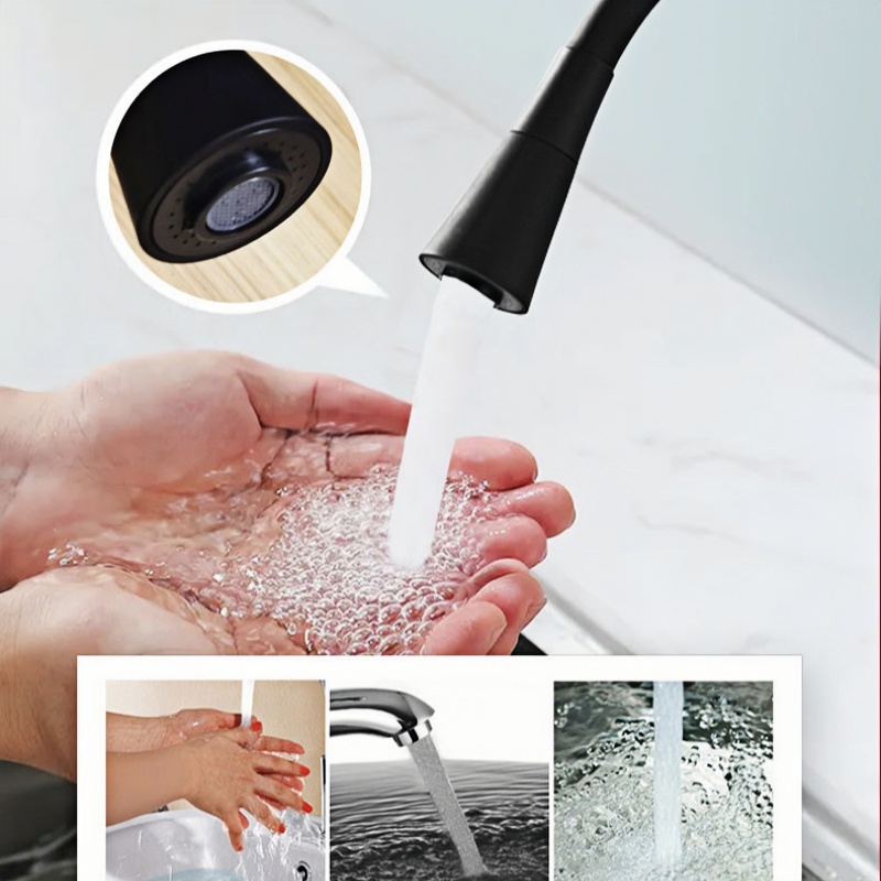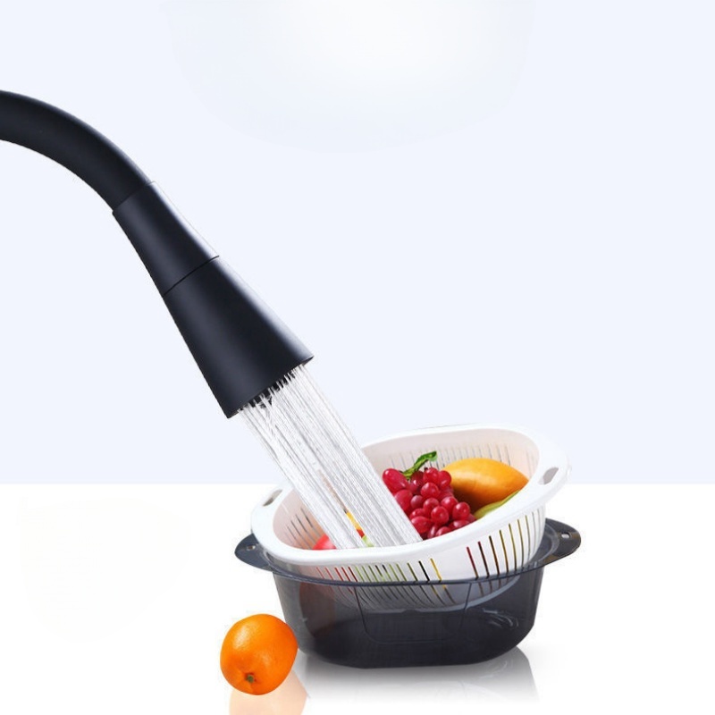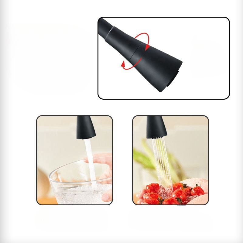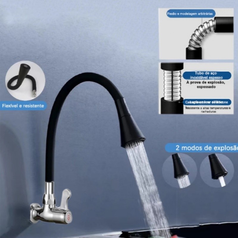 Torneira cozinha parede preta/Prateado flexível Duplo Jato Cone 1/4 de Volta